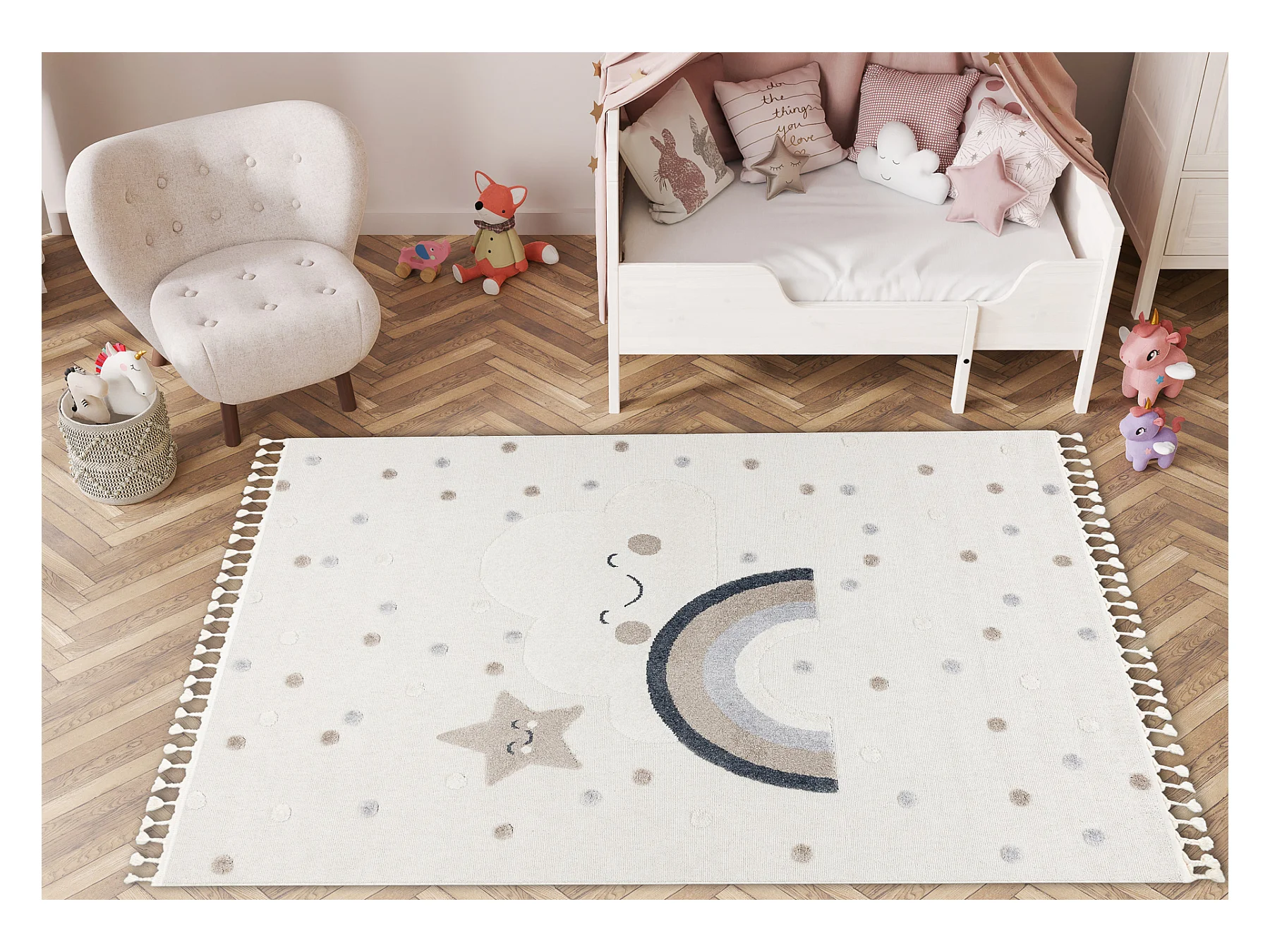 Teppich YOYO EY78 weiß / beige - Wolke, Regenbogen, Punkte für Kinde 200x290 cm