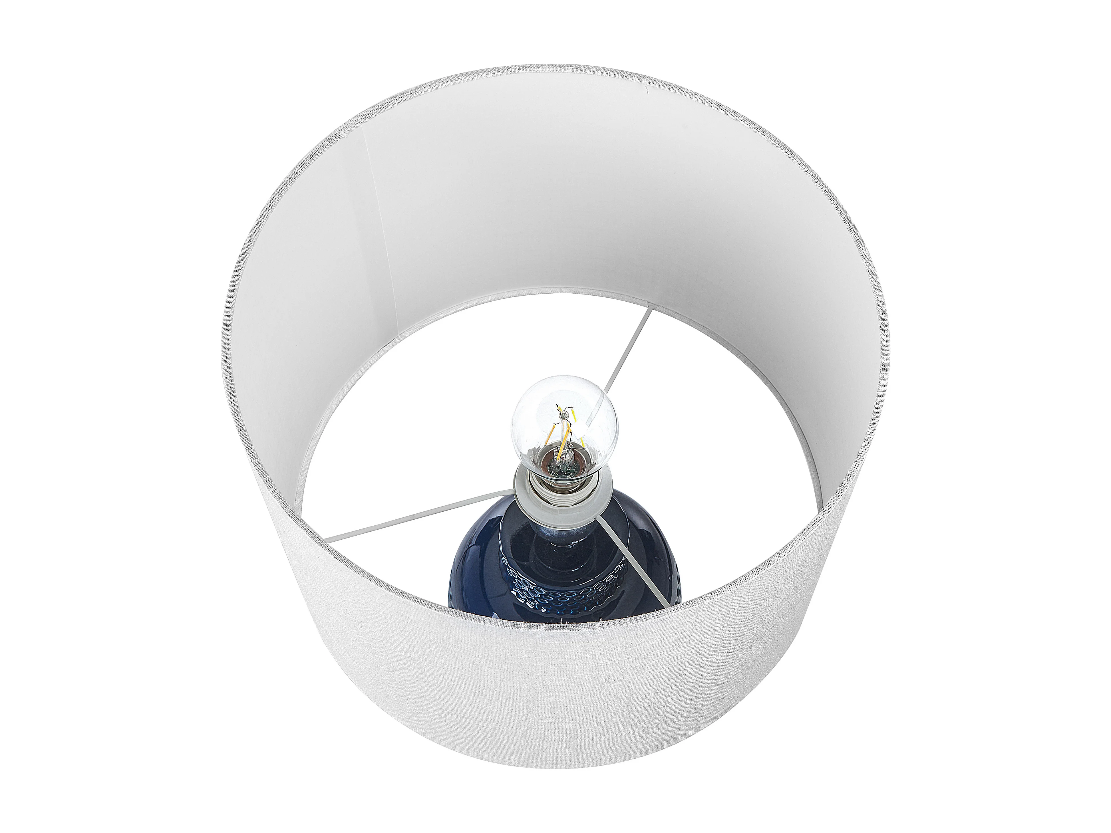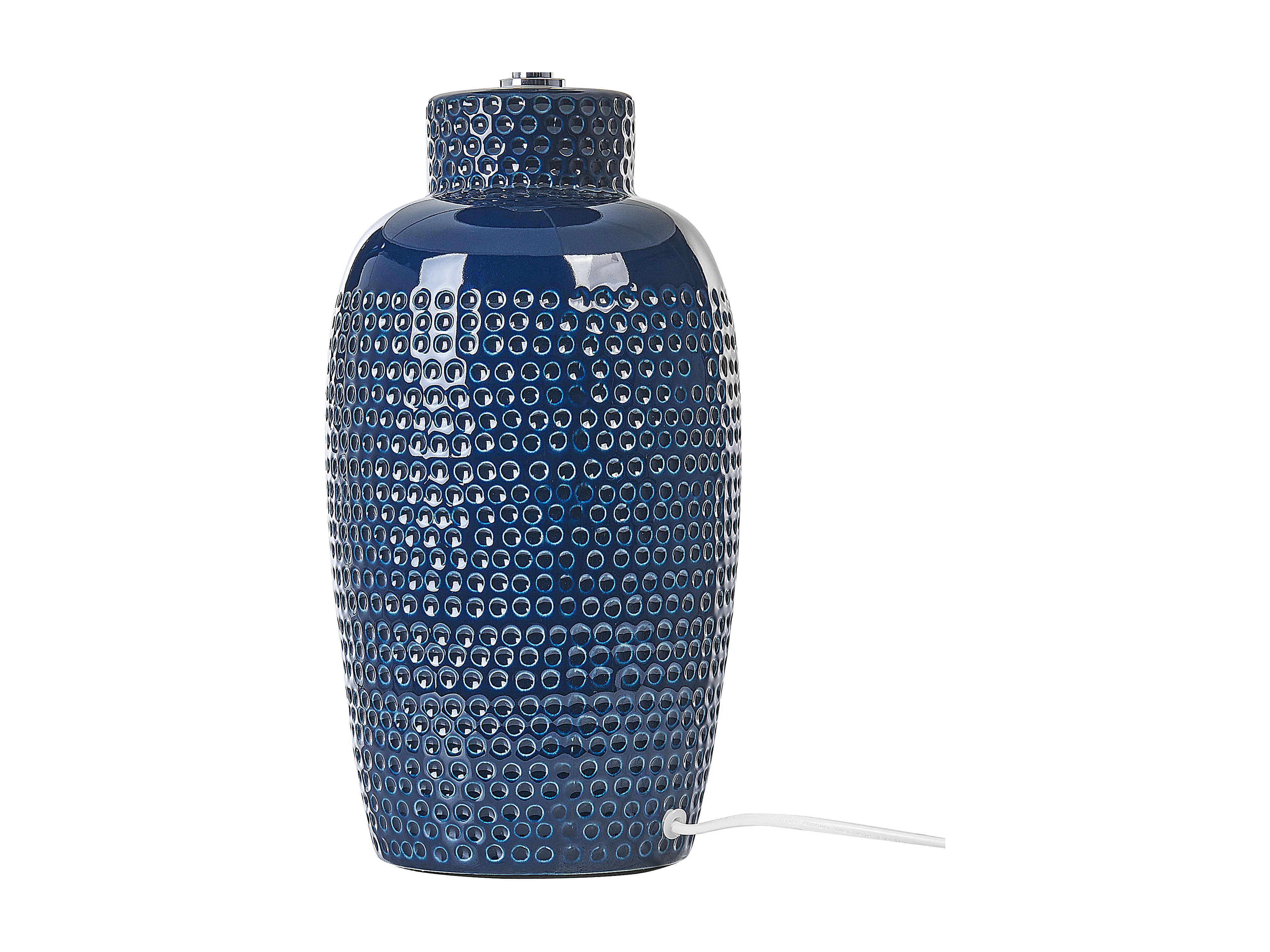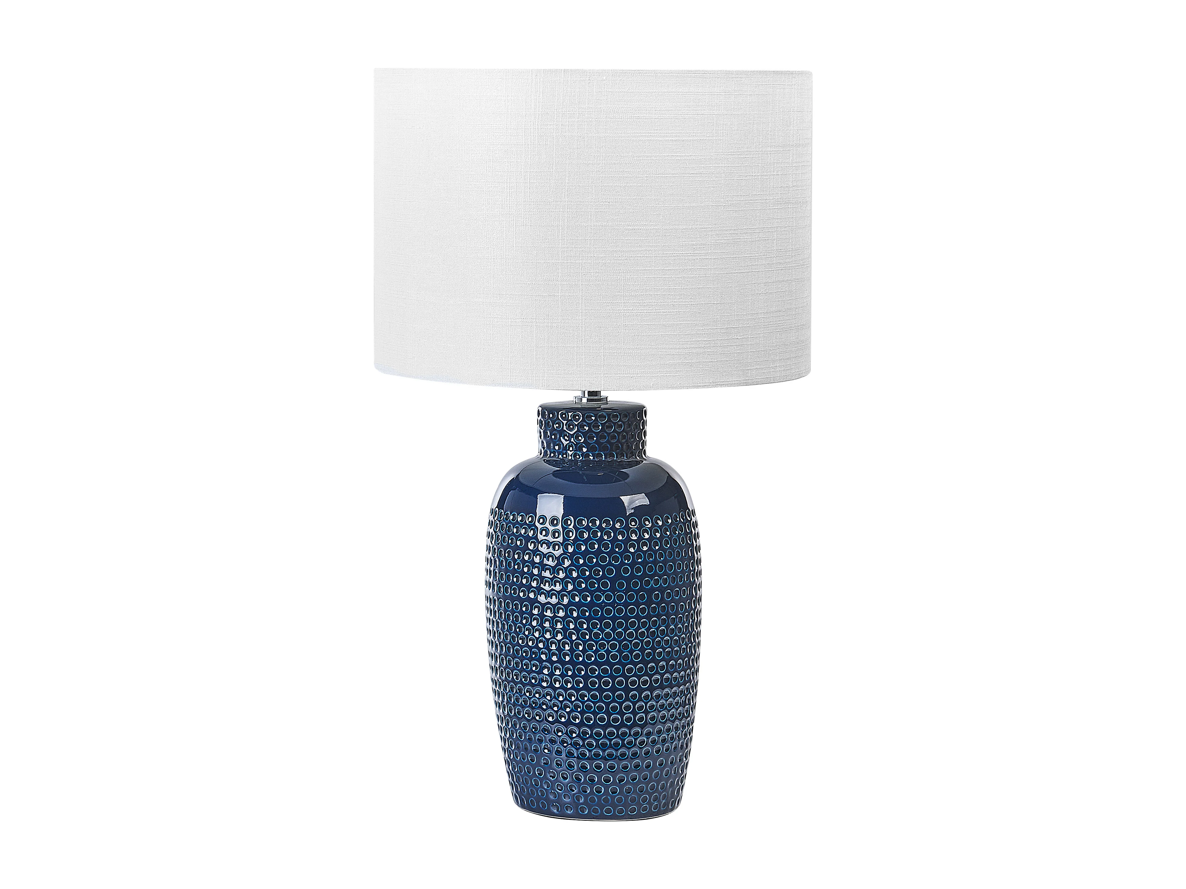 Tischlampe aus Keramik Nachttischlampe weißer Trommelschirm handgefertigt Marineblau Perlis