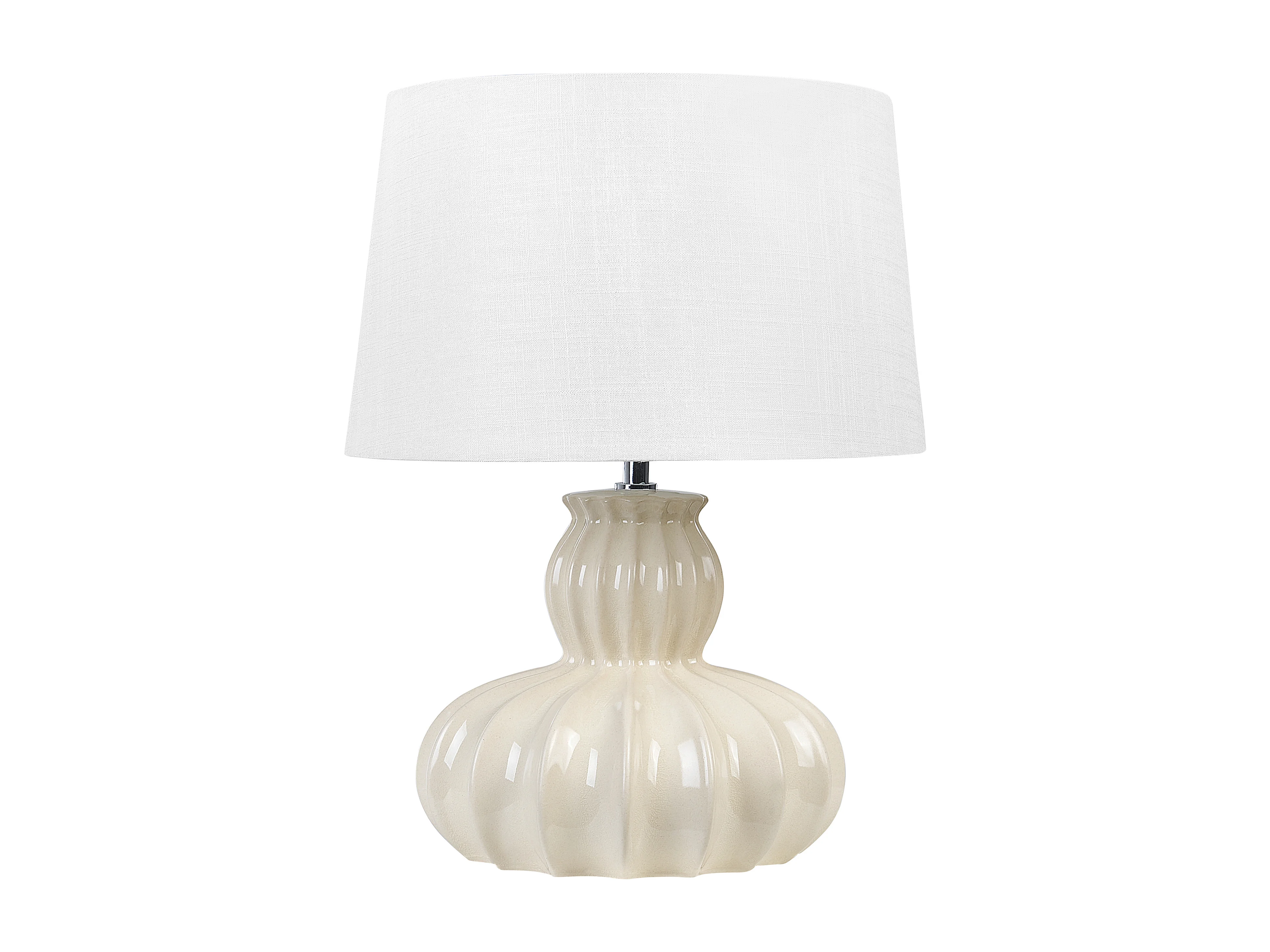 Moderne Tischlampe Glänzend Keramischer Sockel Stoffschirm Wohnzimmer Licht Beige Malabuka