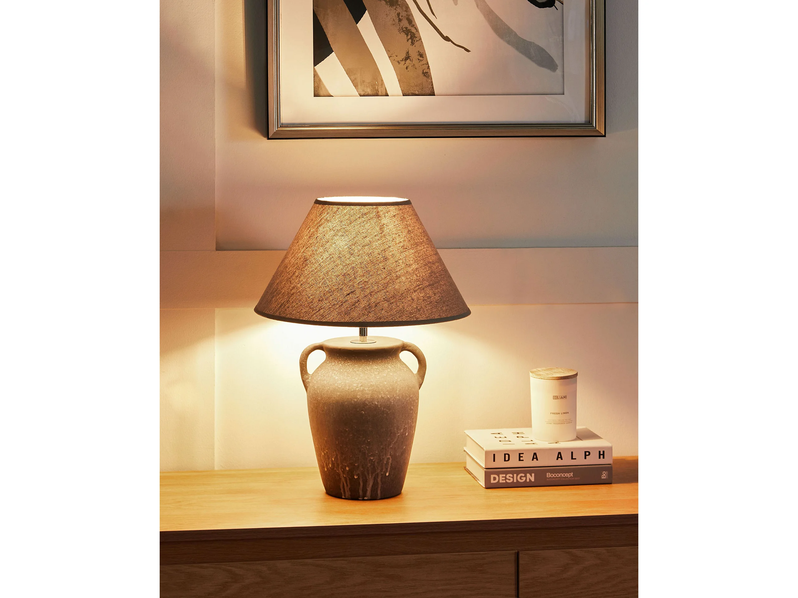 Tischlampe Keramik Vasenfuß grau Stoffschirm Kegelform Kabel mit Schalter Agefet
