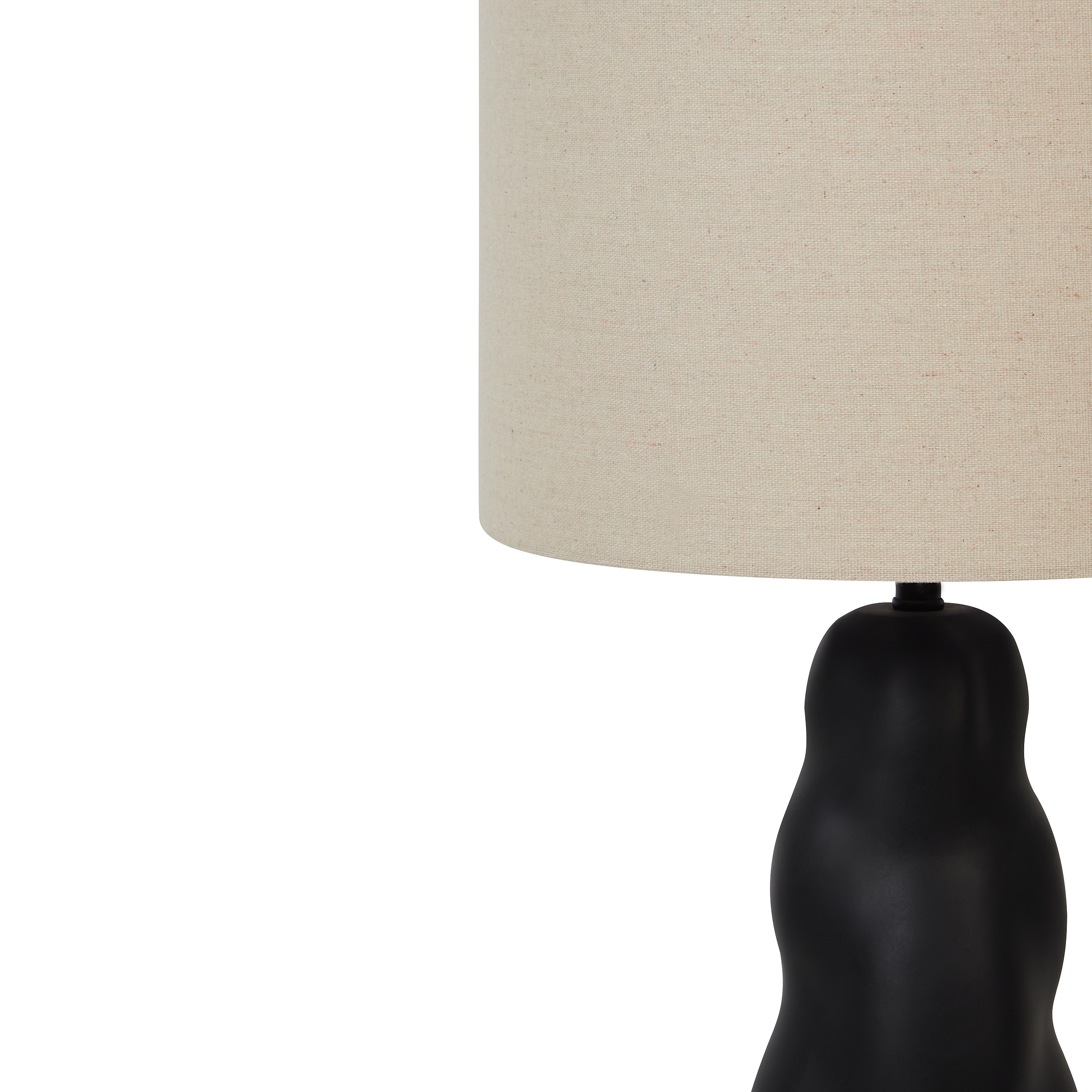 Tischlampe aus Keramik im klassischen Stil – E27 15 W – Höhe 63,5 cm – Lampenschirm aus Baumwolle ø38 cm – IP20 – 2 m Kabel – On&Off – Keramik – Schwarz und Weiß