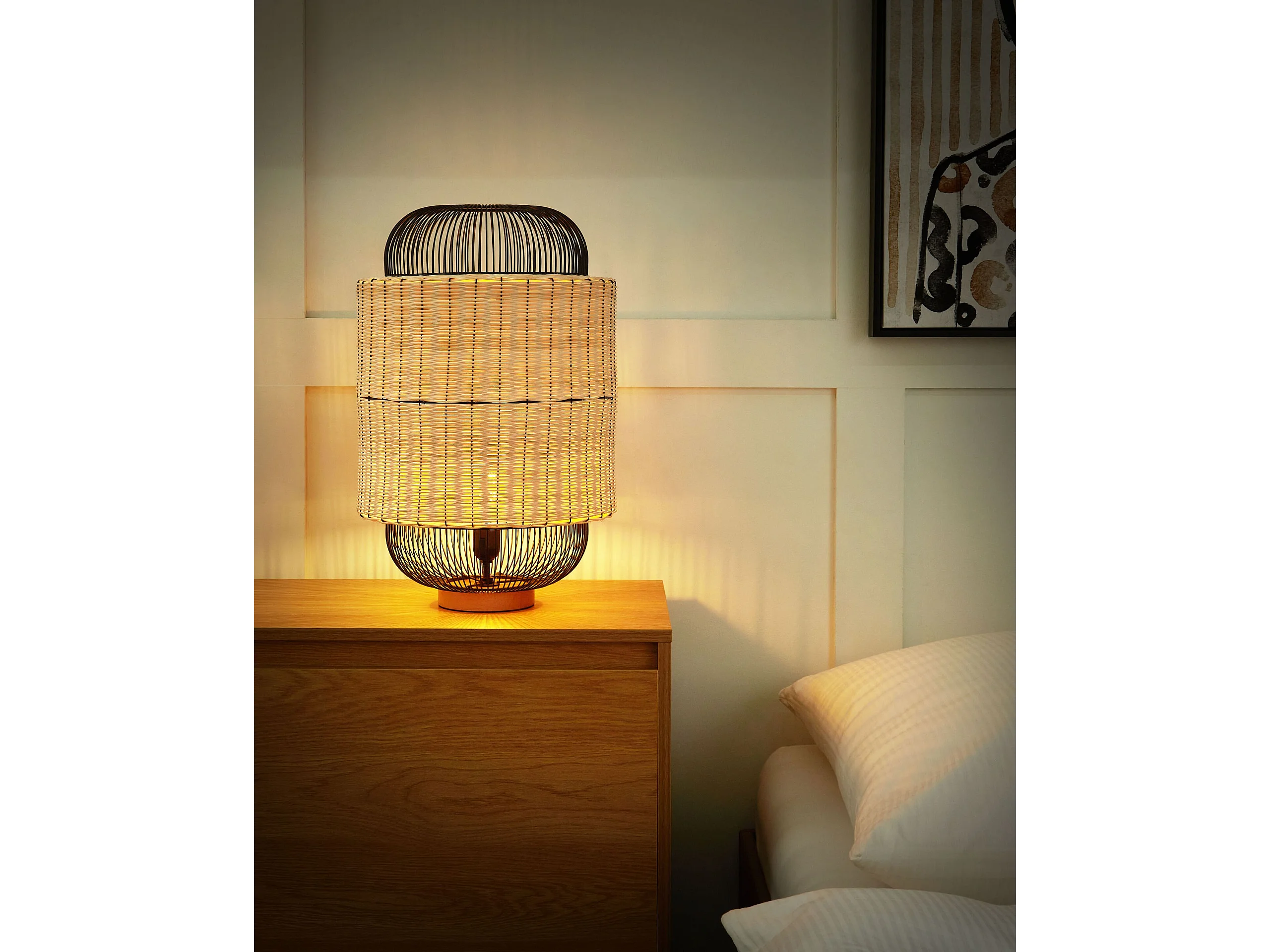 Tischlampe Rattan natürlich beige Metall schwarz Laternenform 55 cm Tanganyika