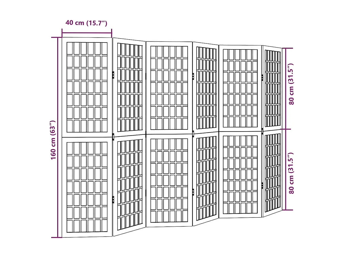 Trennwand 6 Paneele aus weißem massivem Paulownia-Holz