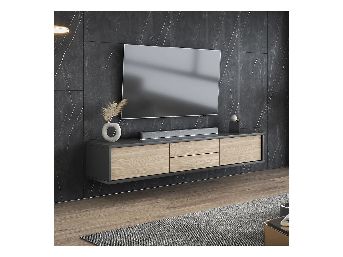 TV-Möbel 2 Türen 2 Schubladen 180 cm Idra Grau und Holz