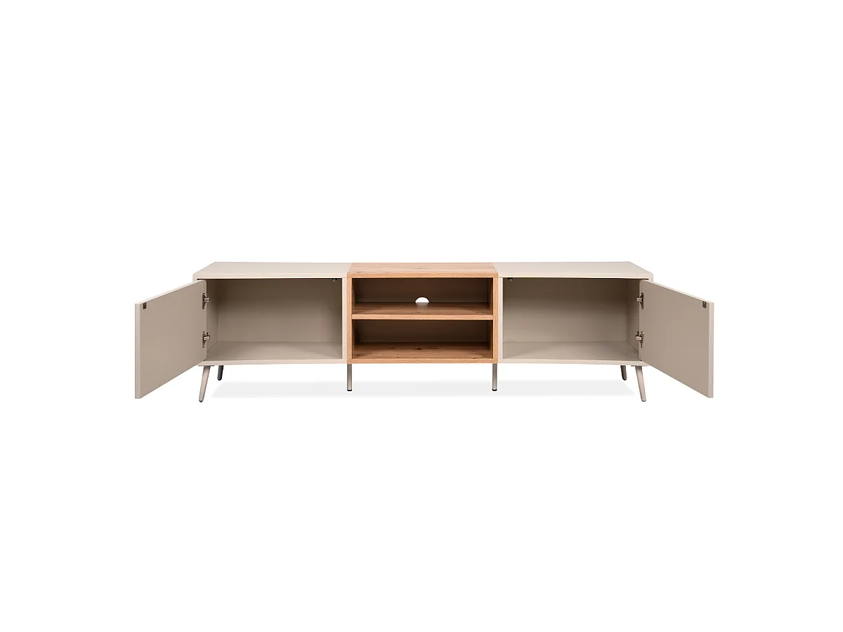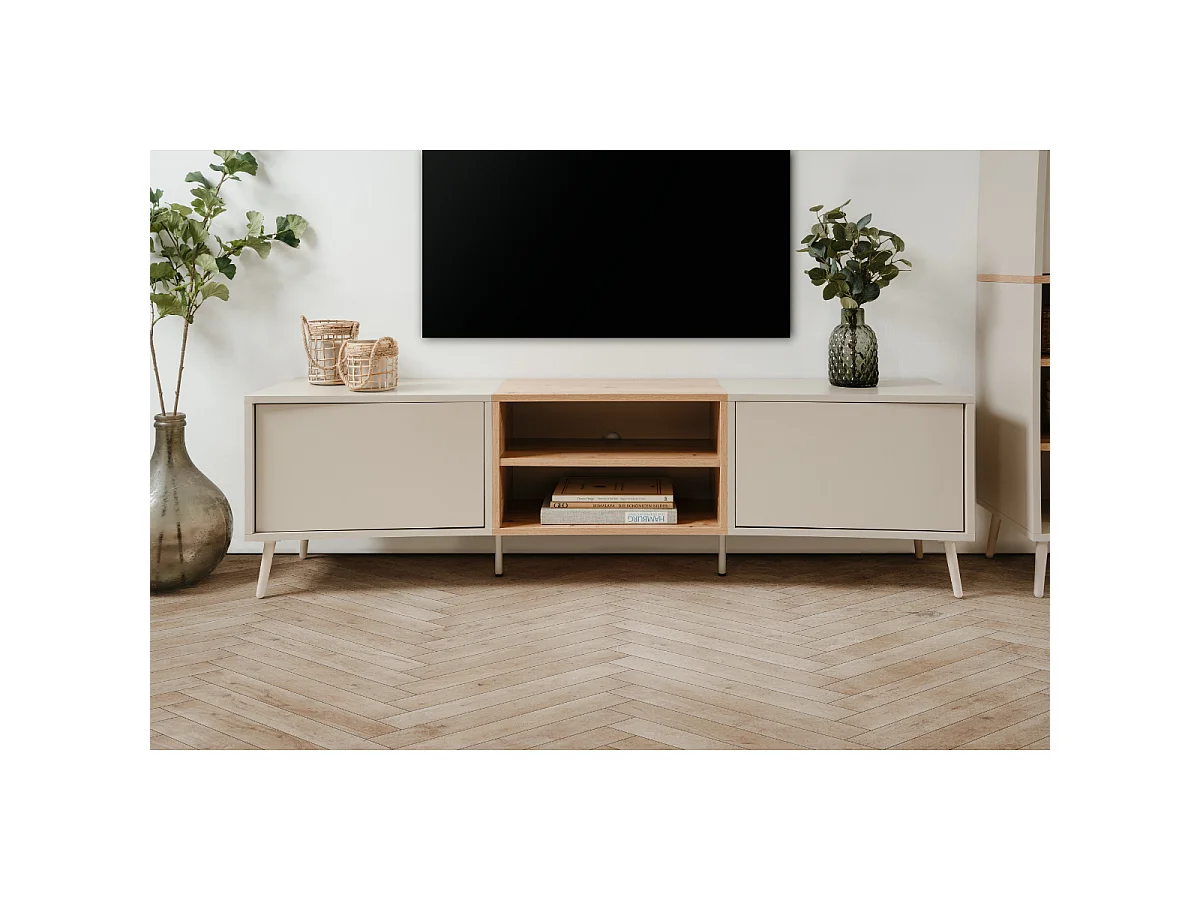 TV-Möbel mit 2 Nischen, 2 Türen in Sand- und Eichenoptik, handgefertigt, L175 cm - MYR