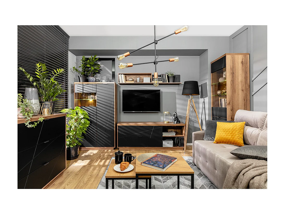 TV-Möbel mit 2 Schubladen 2 Nischen 156 cm Sven Schwarz und Holz