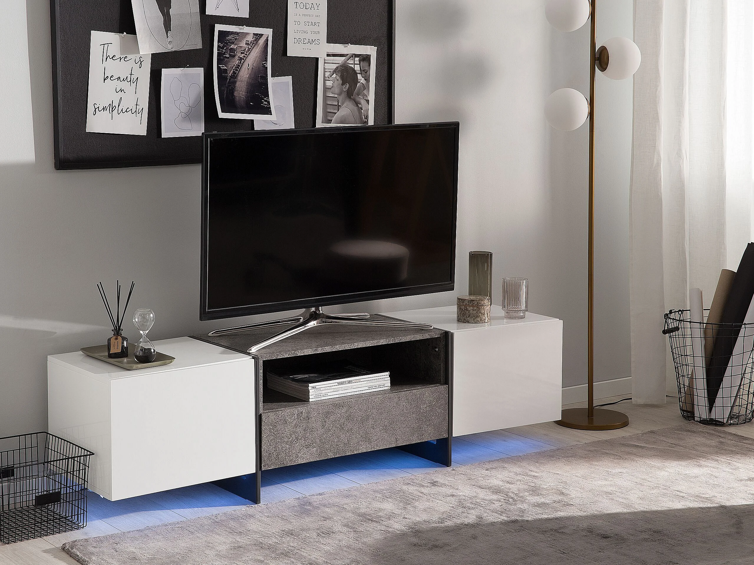 TV-Schrank weiß / Betonoptik mit LED-Beleuchtung Schublade 2 Schränken Russel