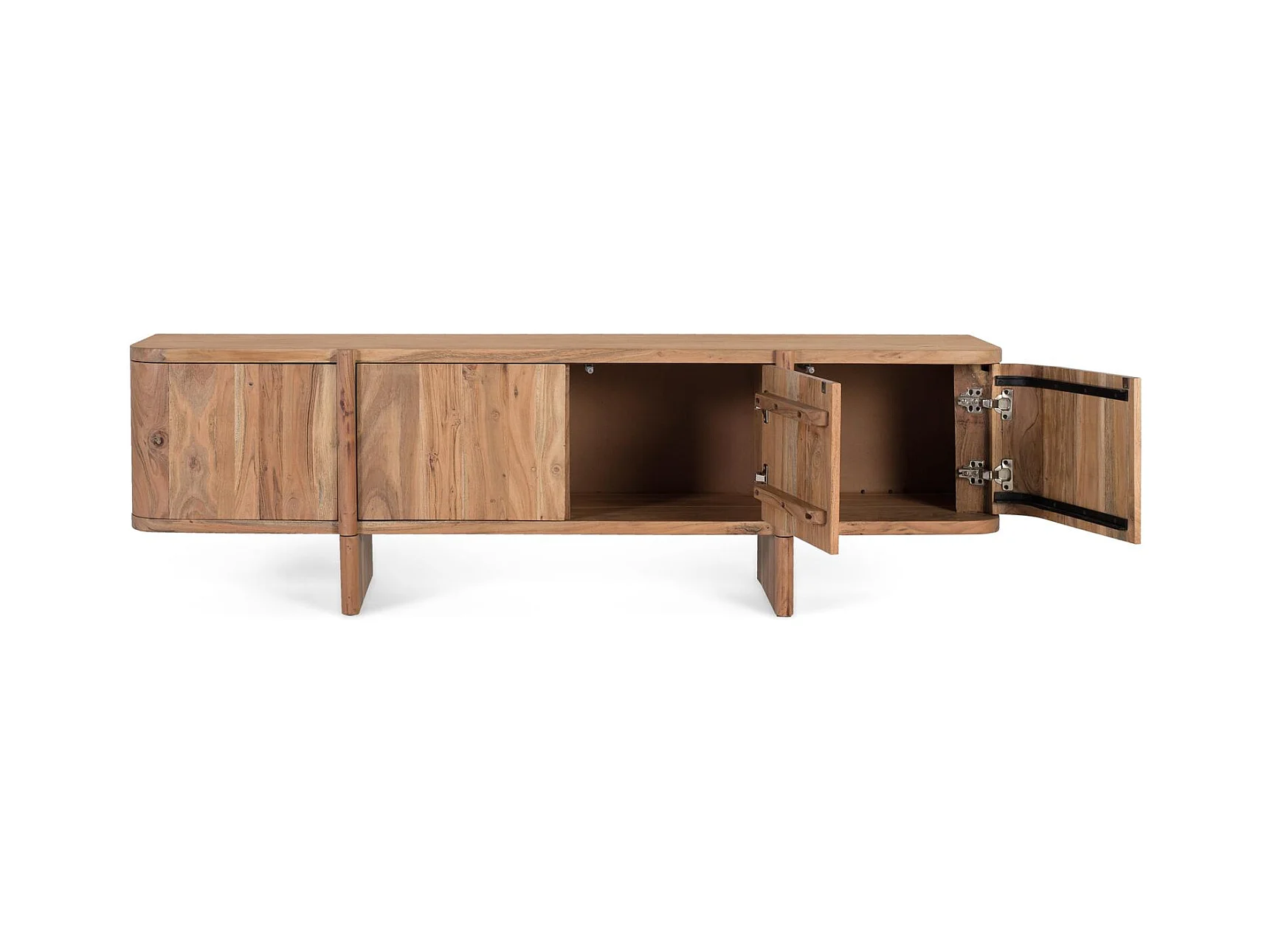 TV-Schrank aus massivem Akazienholz mit abgerundeten Ecken