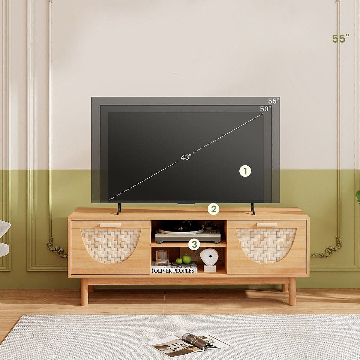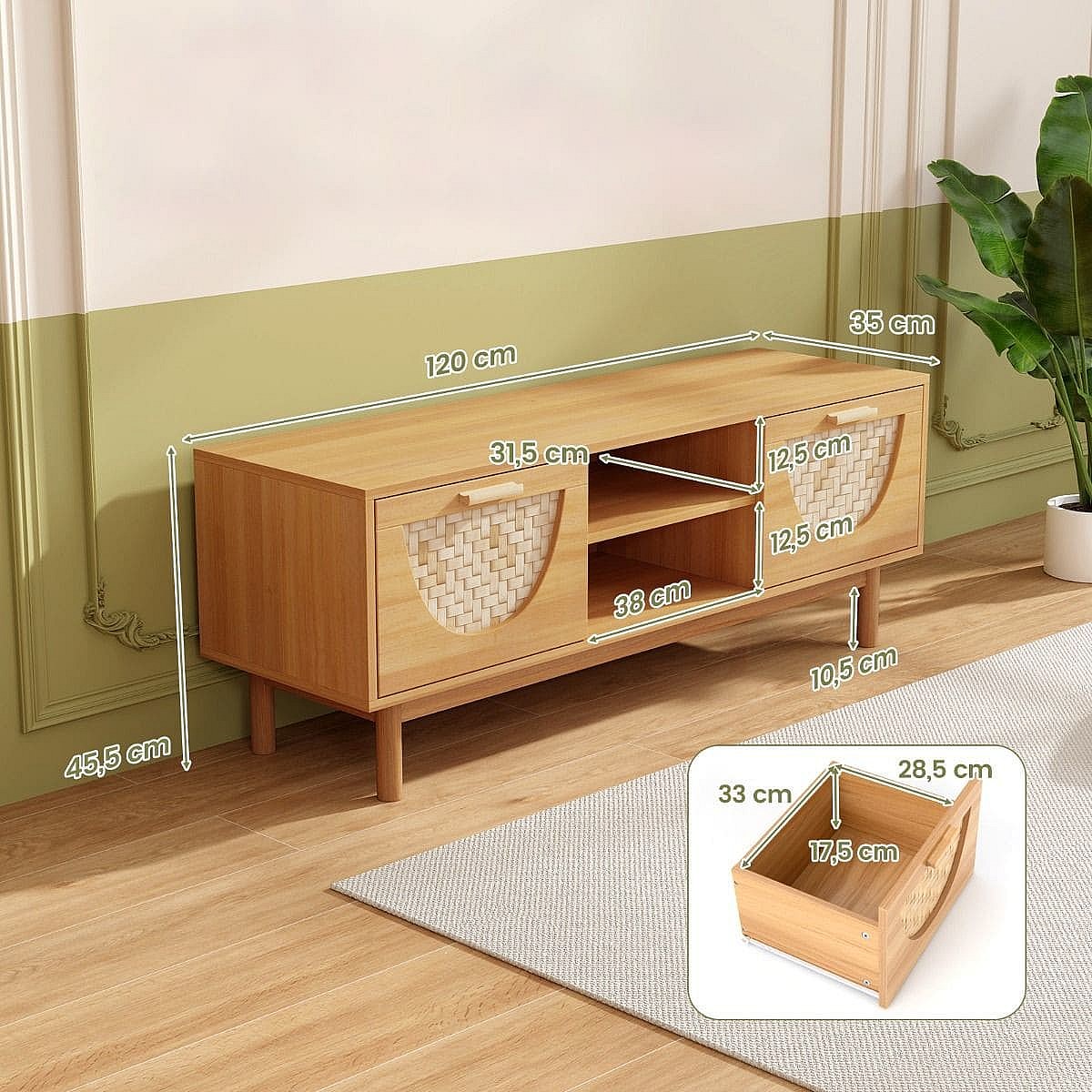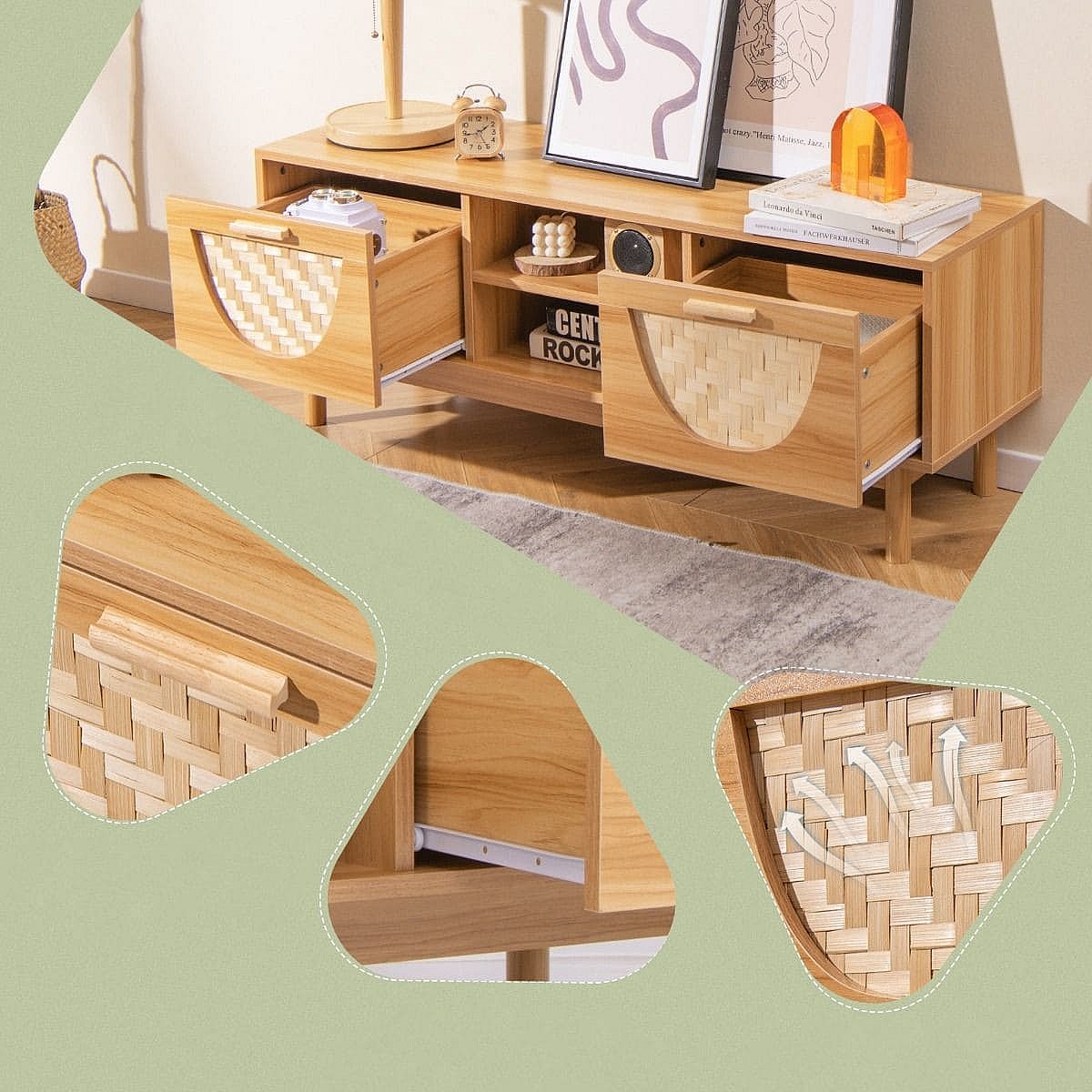 TV Schrank mit 2 Schubladen & Offenen Regalen für TVs bis 55 Zoll TV Lowboard Fernsehschrank