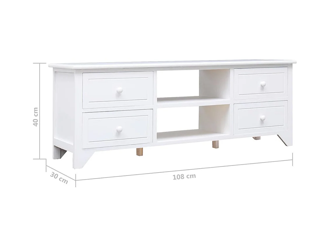 TV-Schrank Weiß 108x30x40 cm Massivholz Paulownia