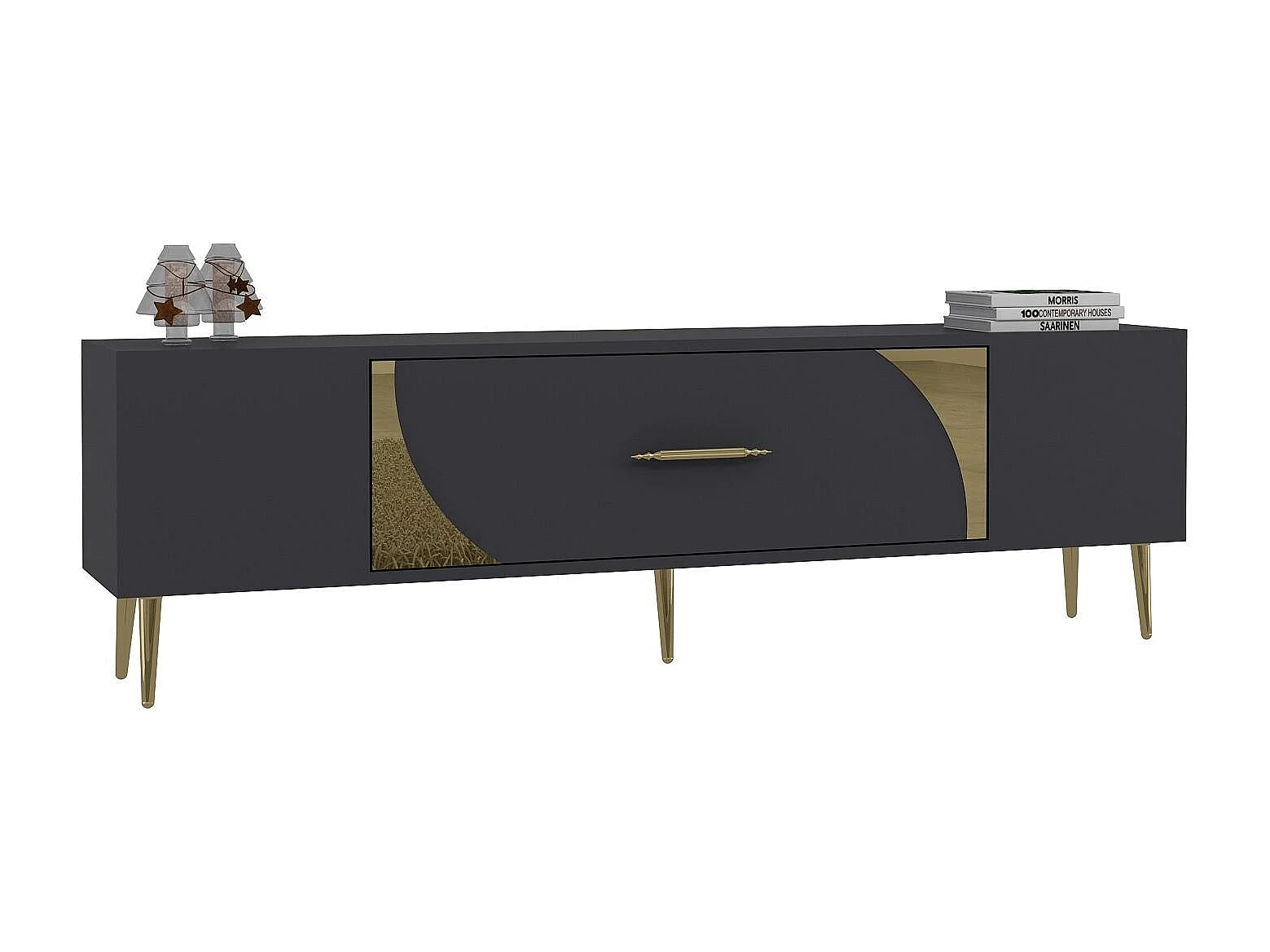 TV-Schrank – 150 cm x 44,6 cm x 29,6 cm – Anthrazit und Gold – Melaminbeschichtete Spanplatte