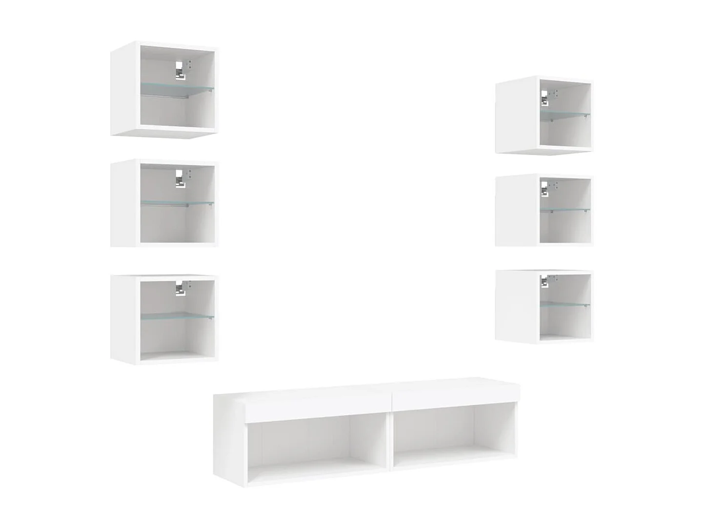 TV-Wandeinheiten mit LED 8 Stück weiß Holzwerkstoff