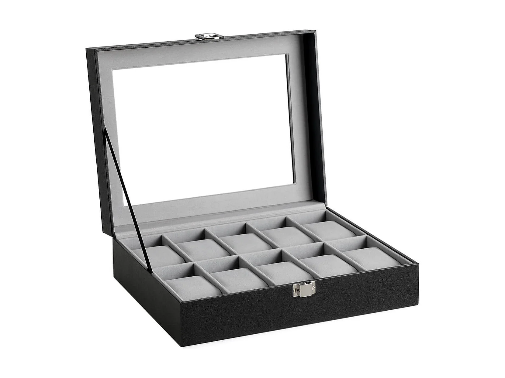 Uhrenbox für 10 Uhren mit Glasdeckel