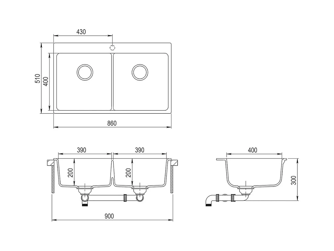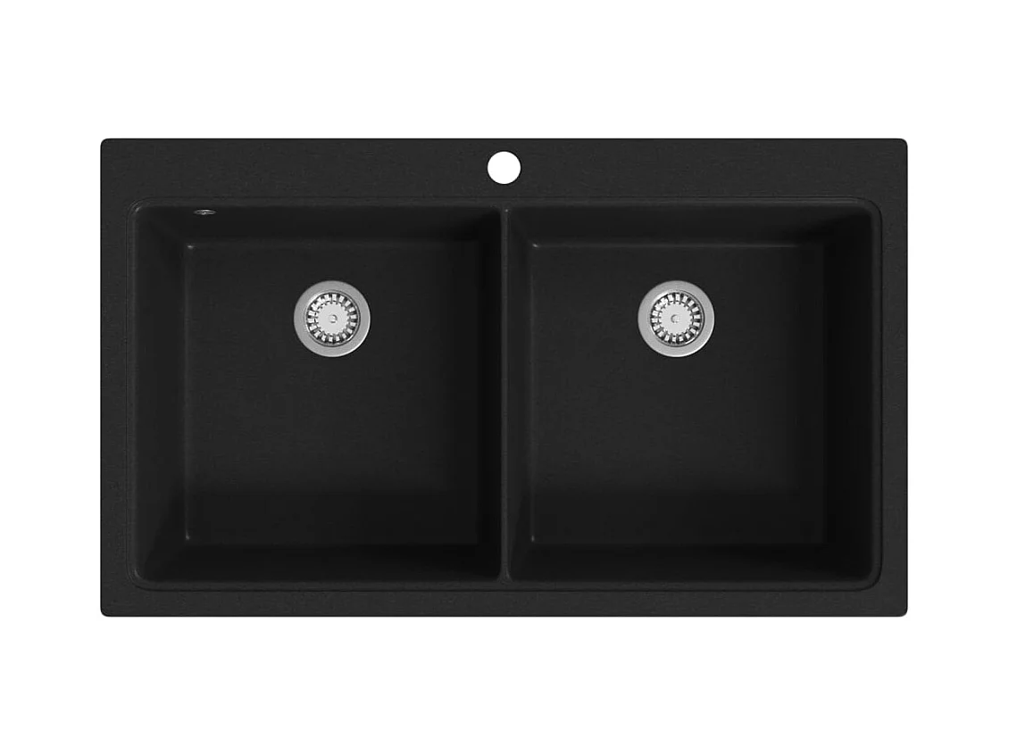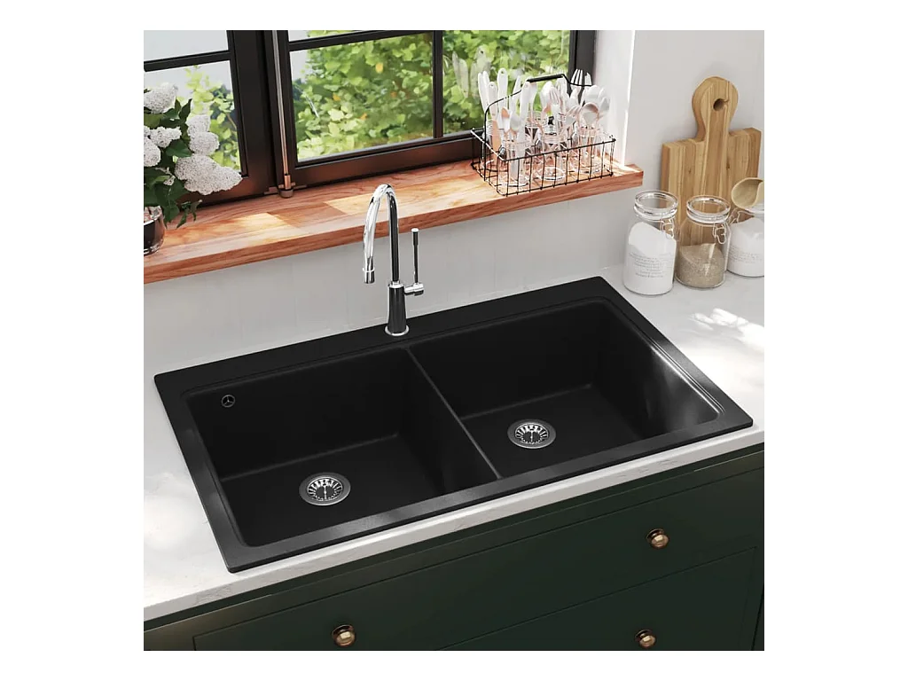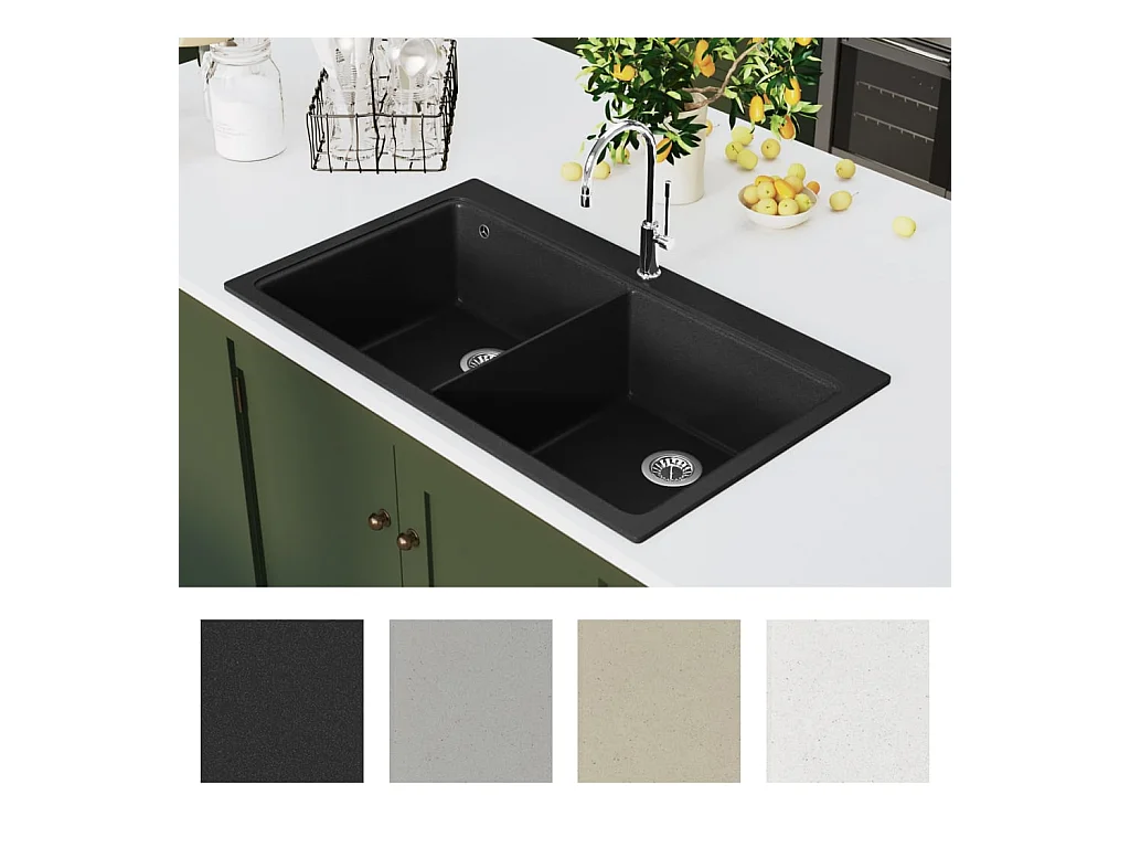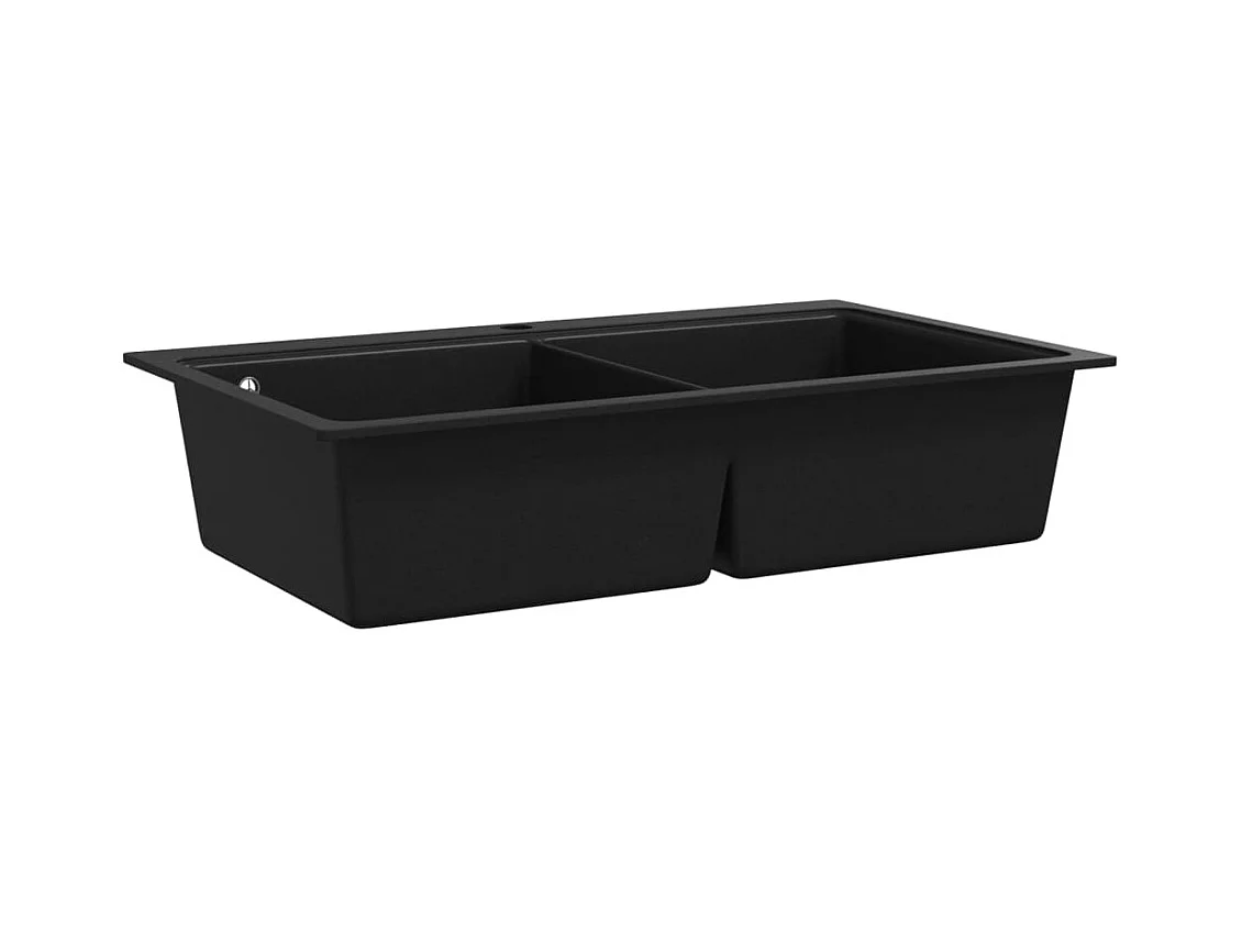 Unterbauspüle aus schwarzem Granit mit Doppelbecken