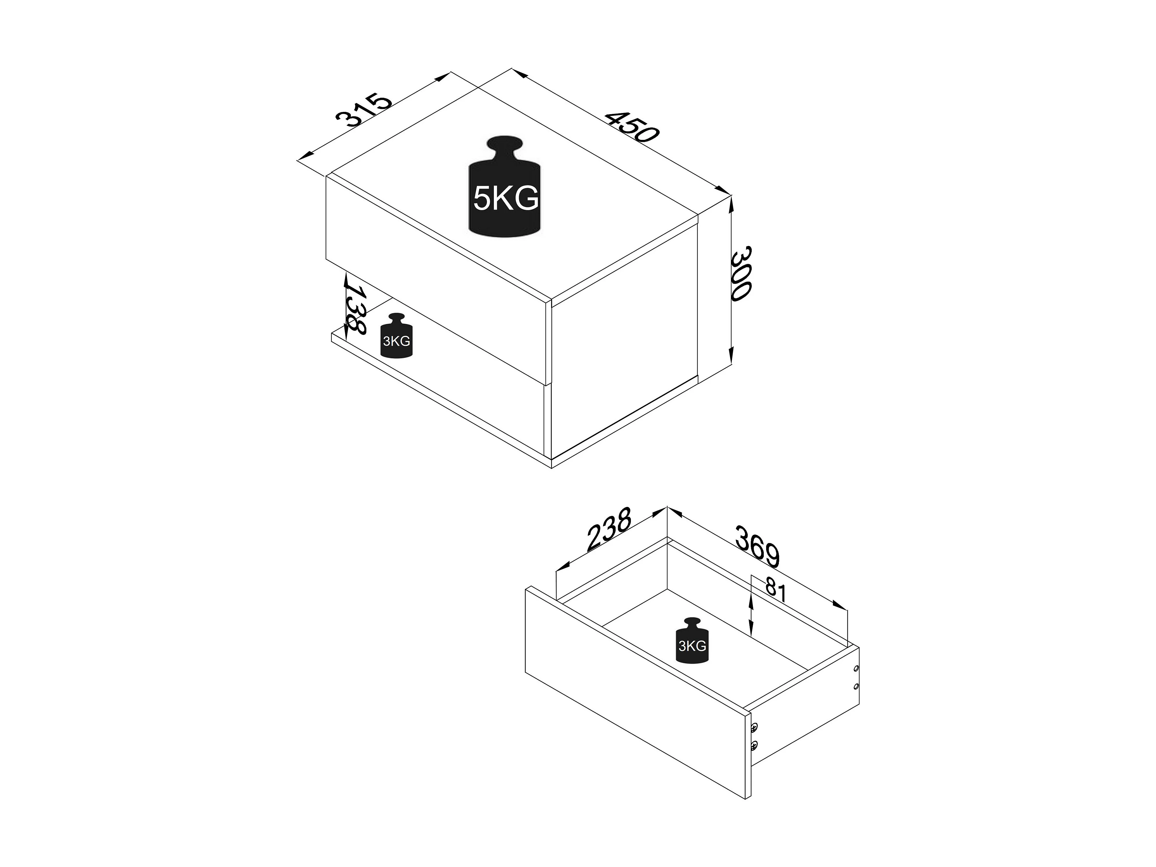 Wandschublade Wand Hänge Nachttisch Usal XL 45cm