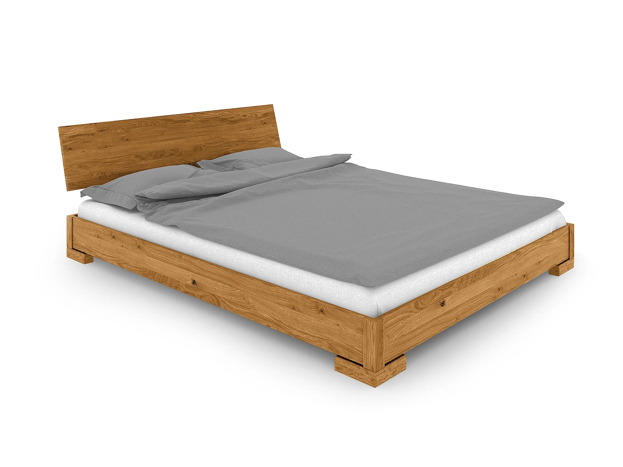 VENTO - Niedriges Bett mit Holzkopfteil aus Wildeiche, naturgeölt 100x200