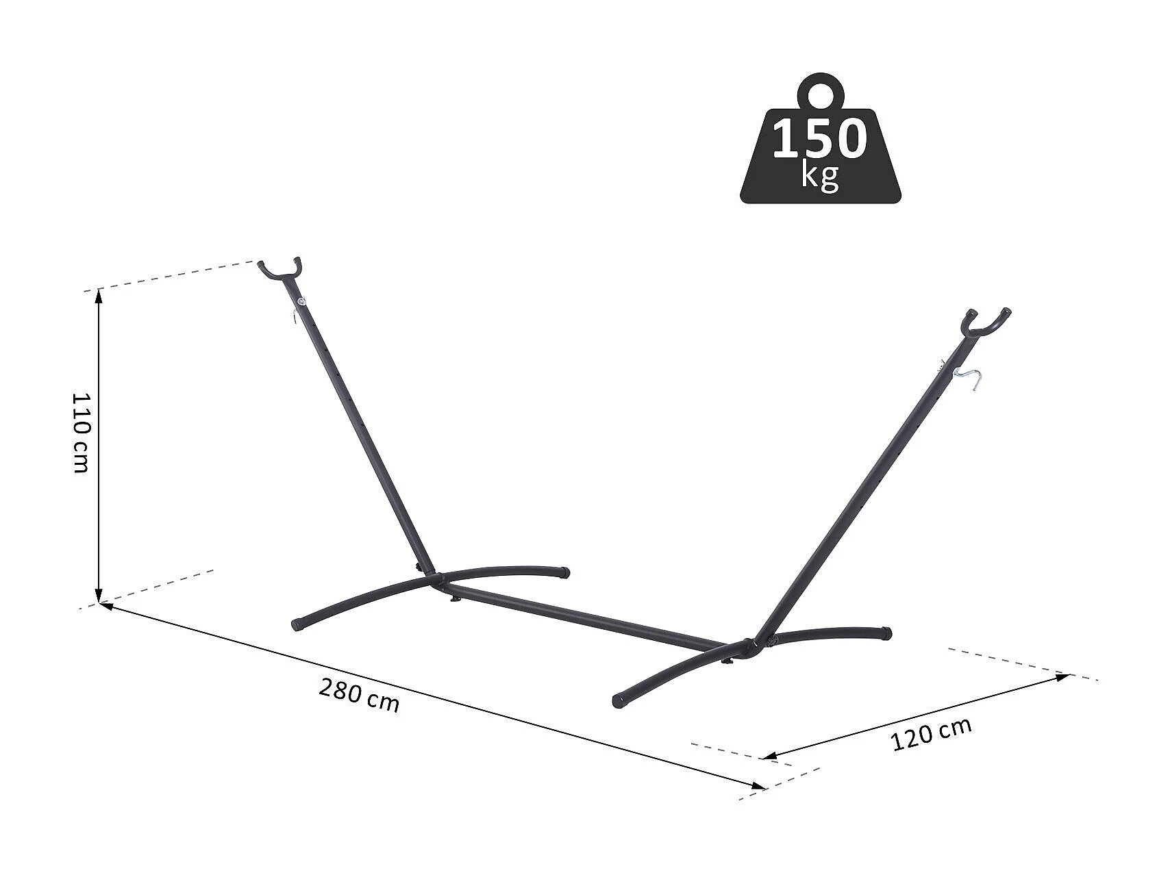 Verstellbare Hängemattenhalterung 280 x 120 x 110 cm – Farbe: Schwarz