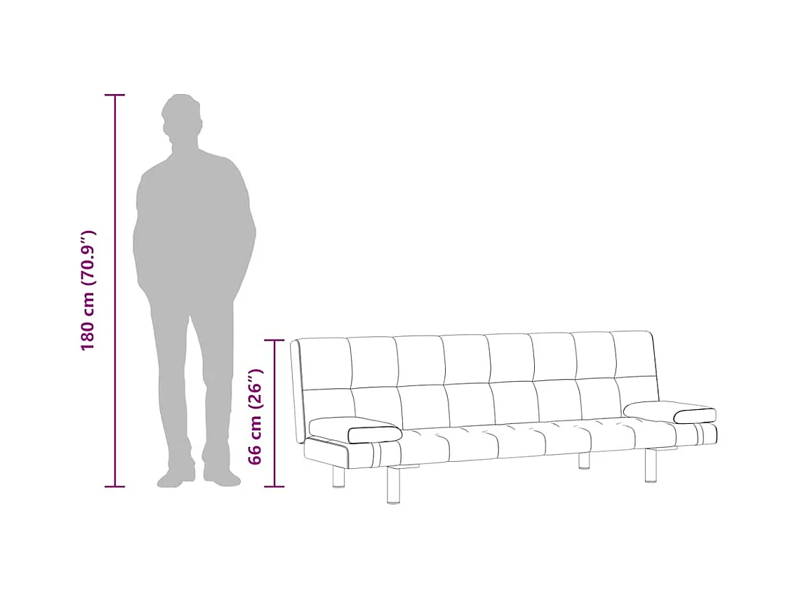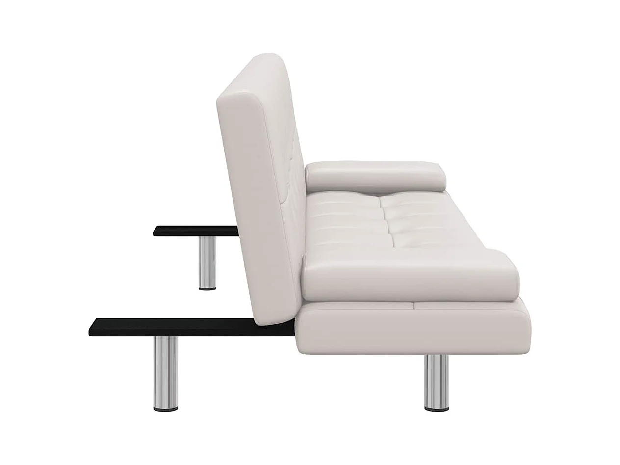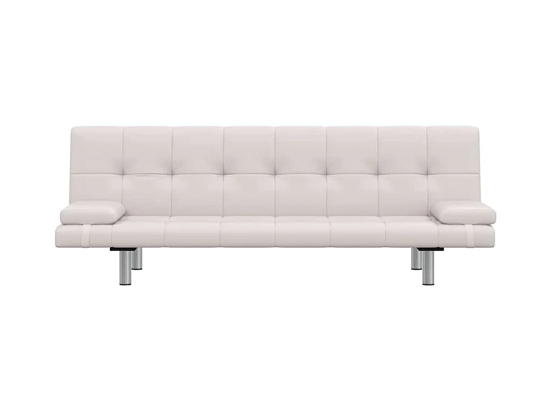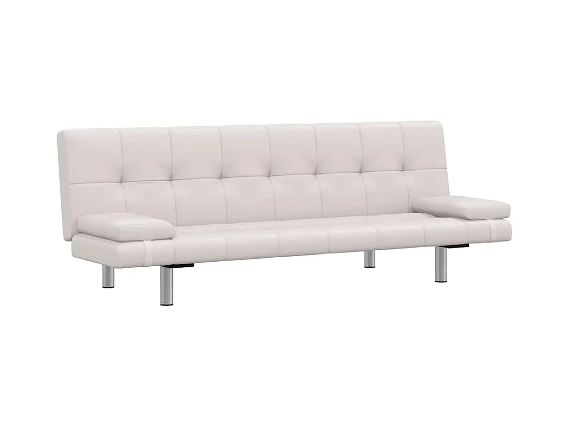 Verstellbares Schlafsofa mit zwei Kissen, Kunstleder, Cremeweiß