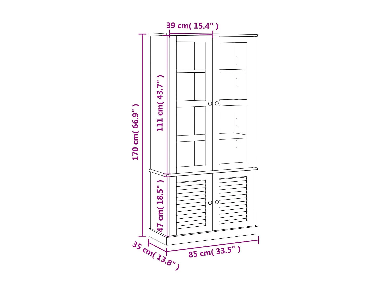 VIGO Glasvitrine 85x35x170 cm Kiefer Massivholz