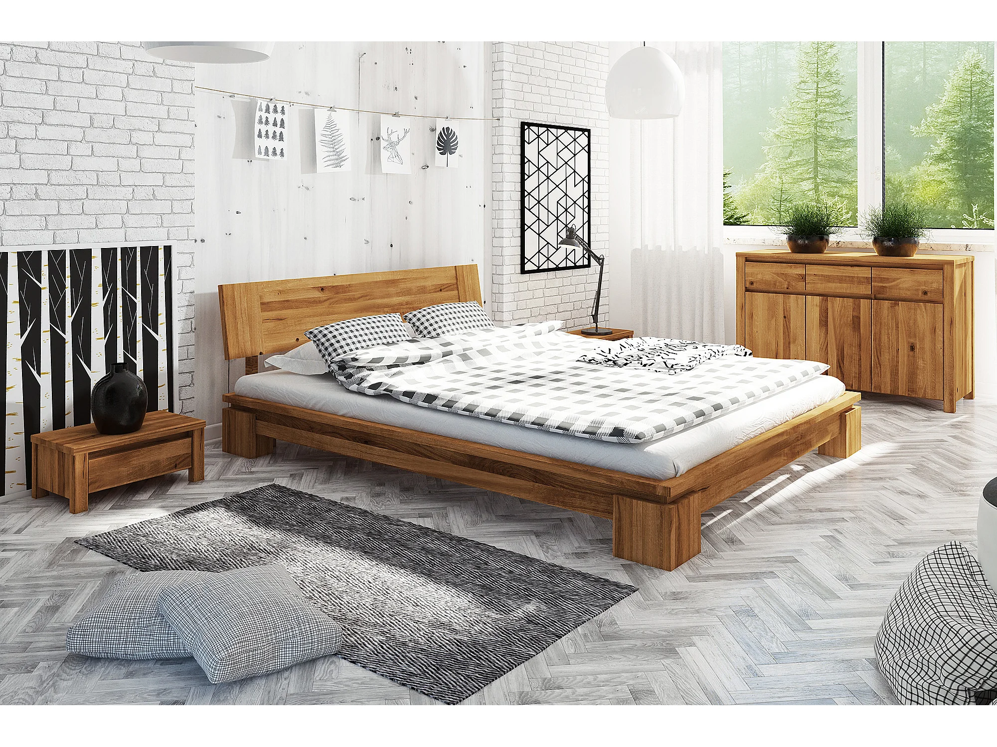 VINCI - Bettgestell mit Holzkopfteil 160 x 200 aus Wildeiche, naturgeölt