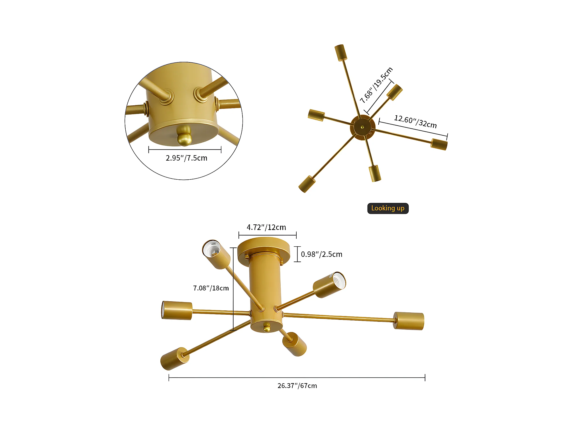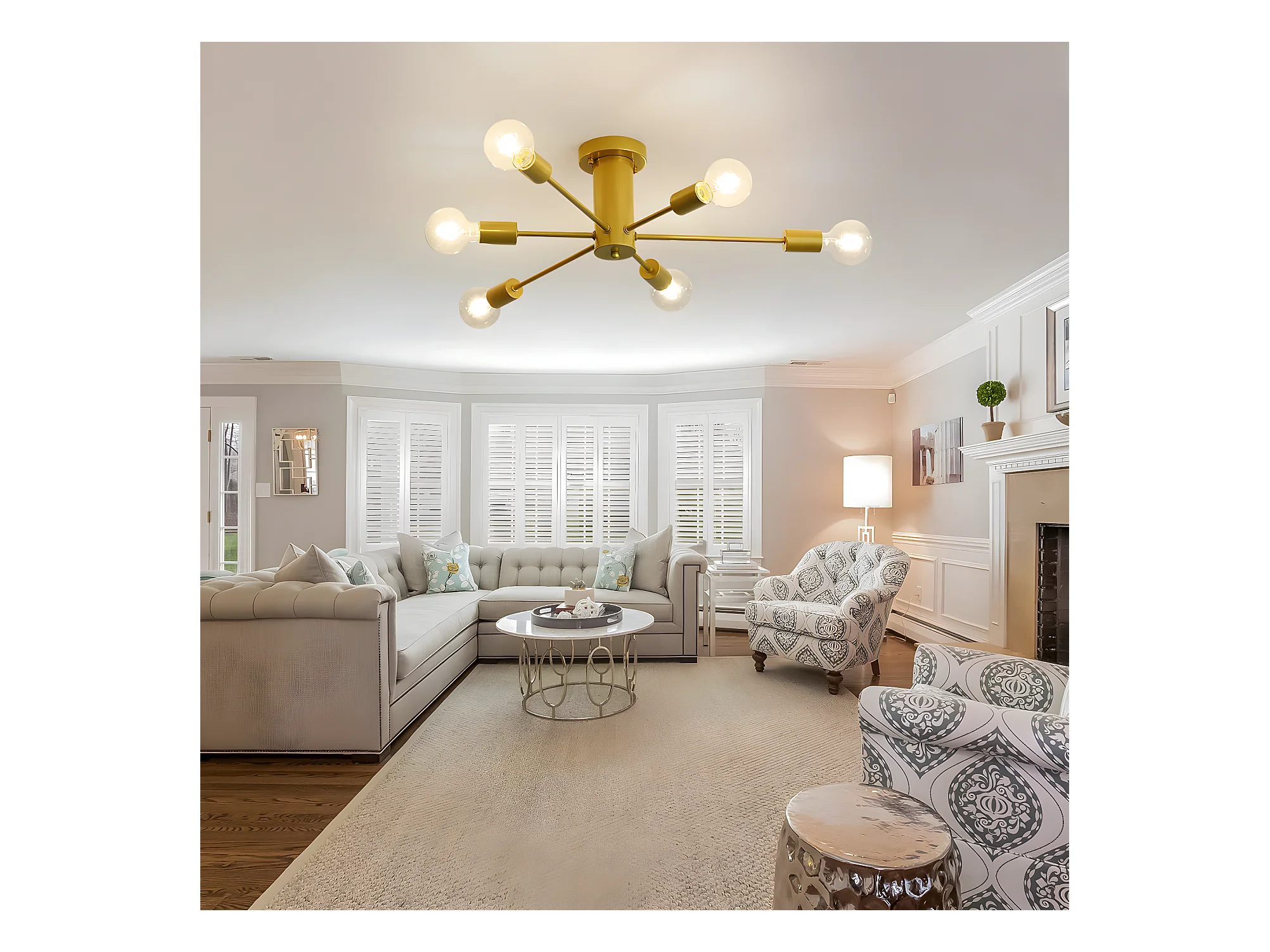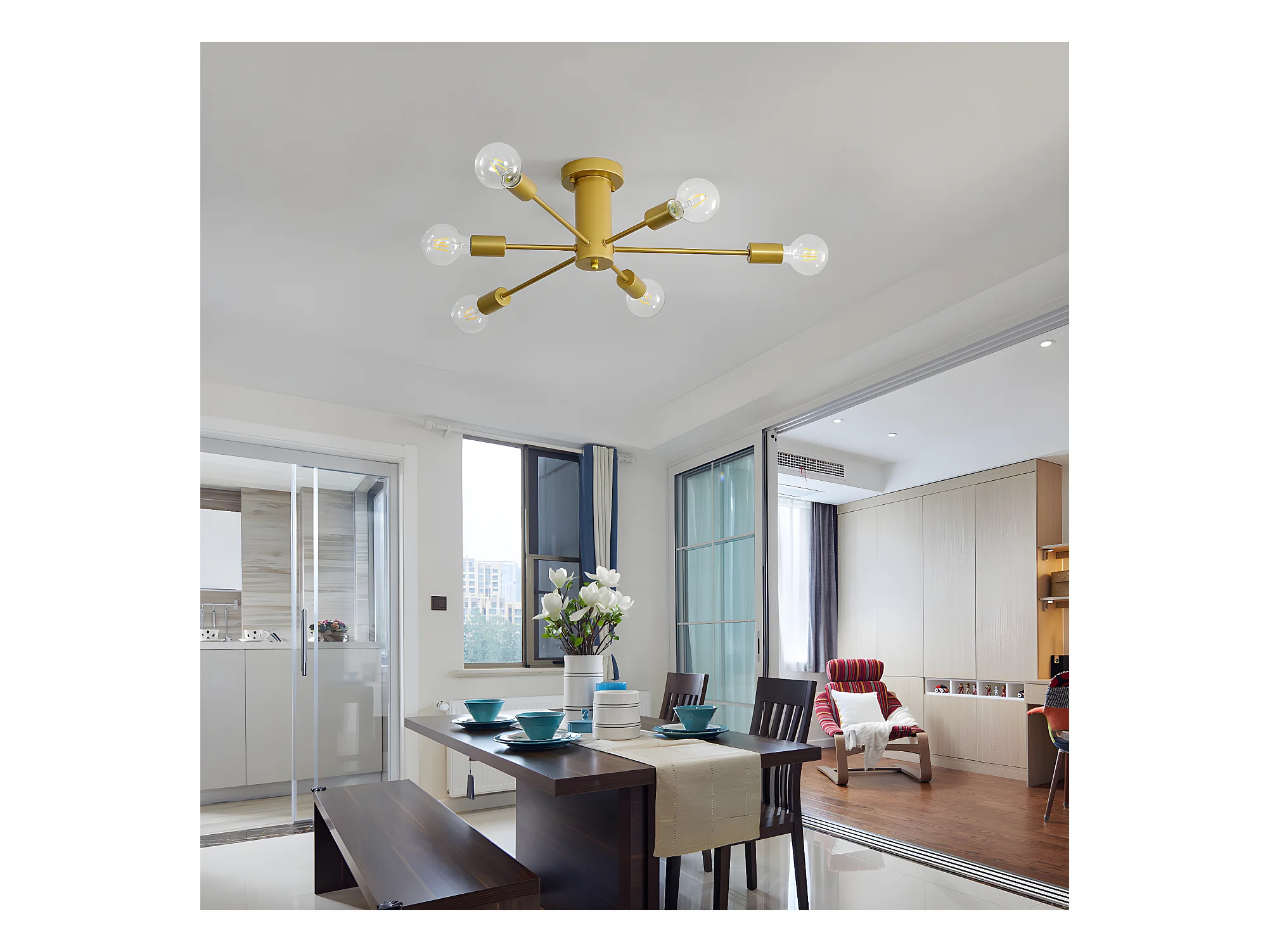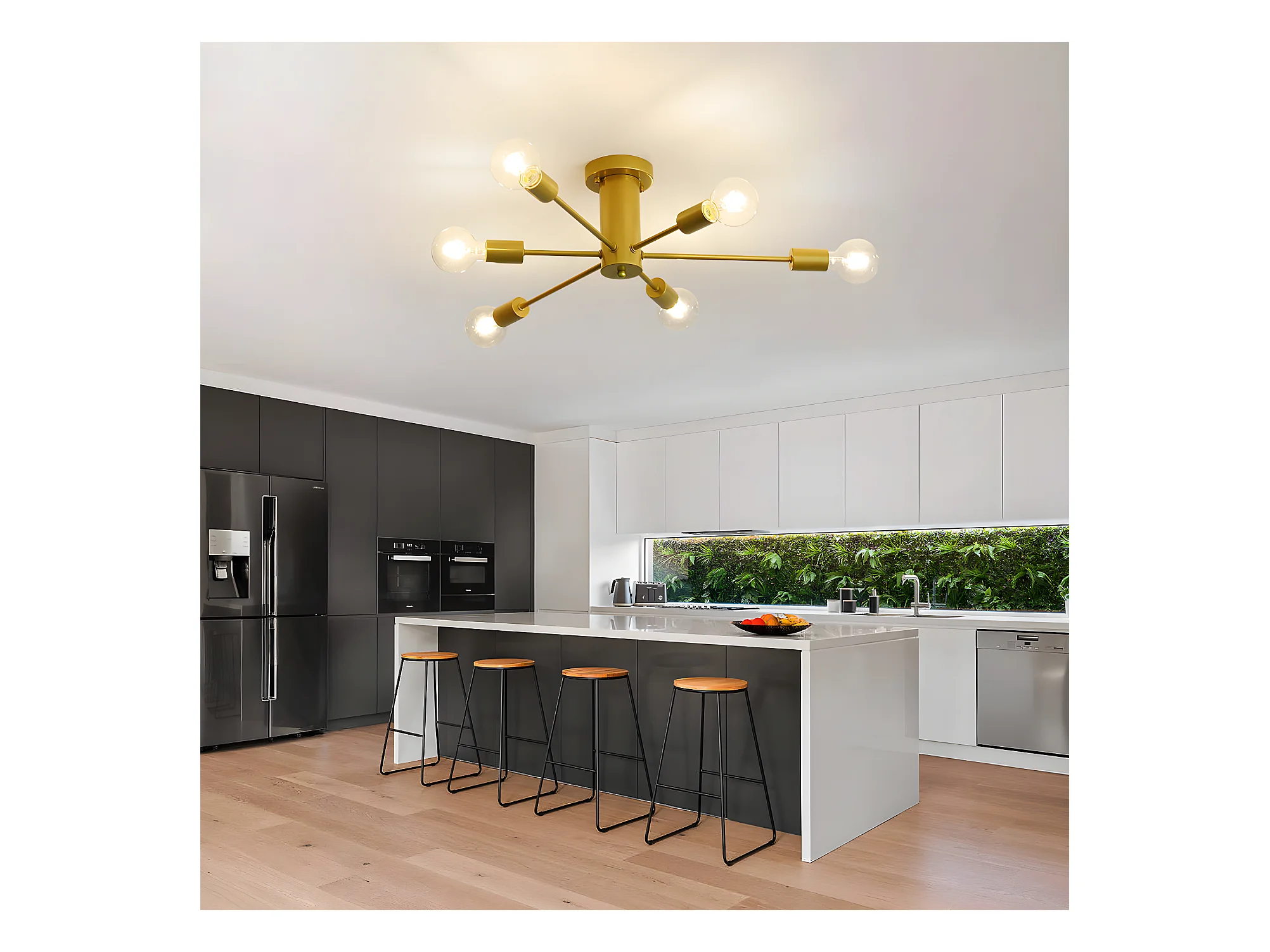 Vintage-Industrie-Deckenleuchte, Gold, 54*54*15 cm, 6 Leuchten, Beleuchtung ohne E27-Glühbirne