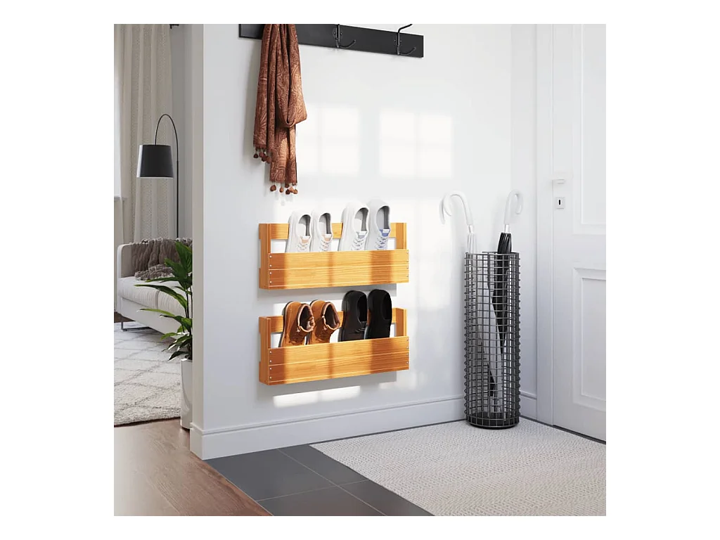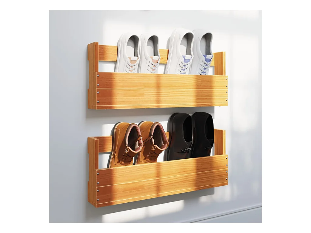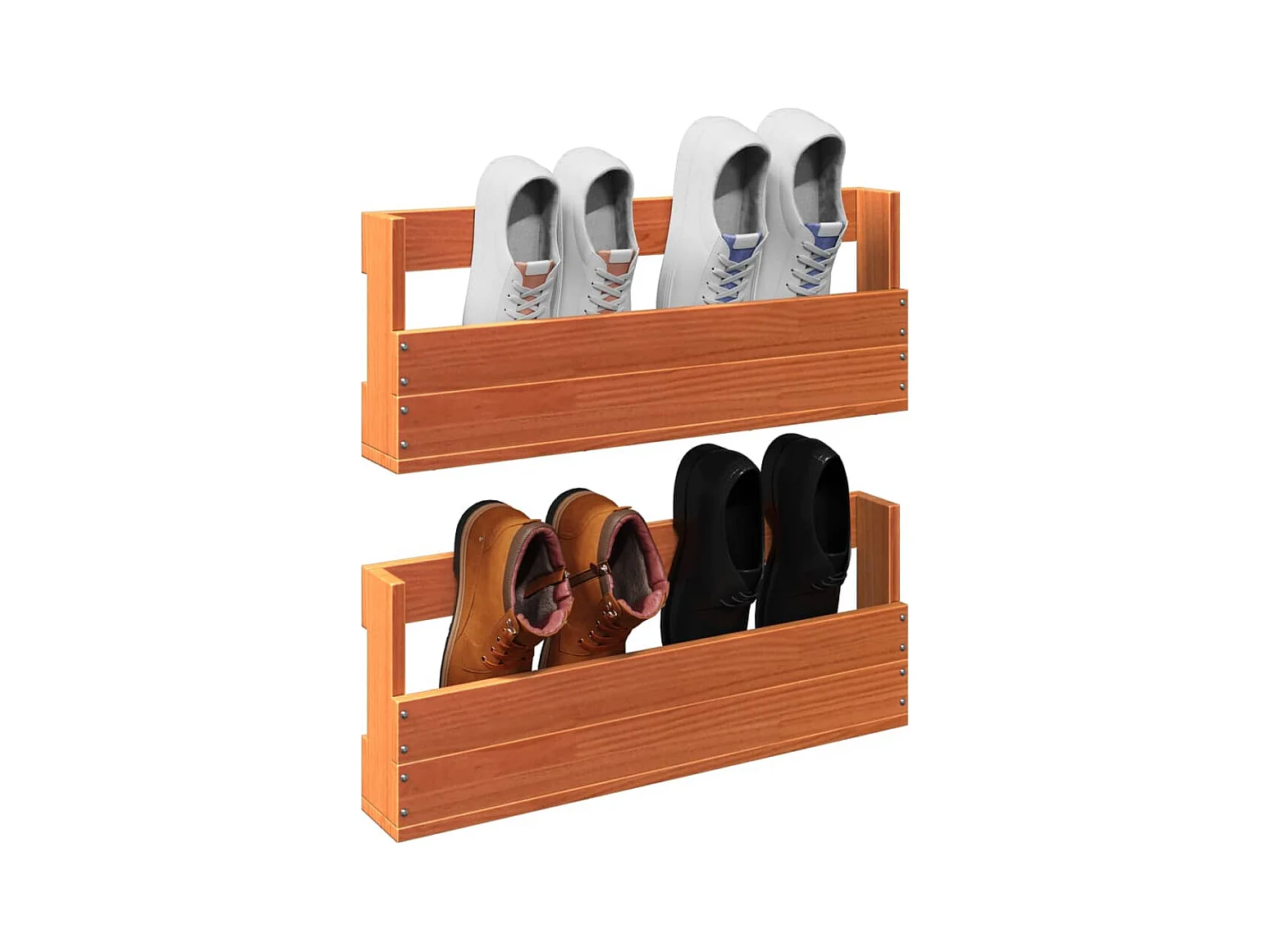 Wand-Schuhregale 2 Stk. Wachsbraun 59x8,5x23,5 cm Massivholz