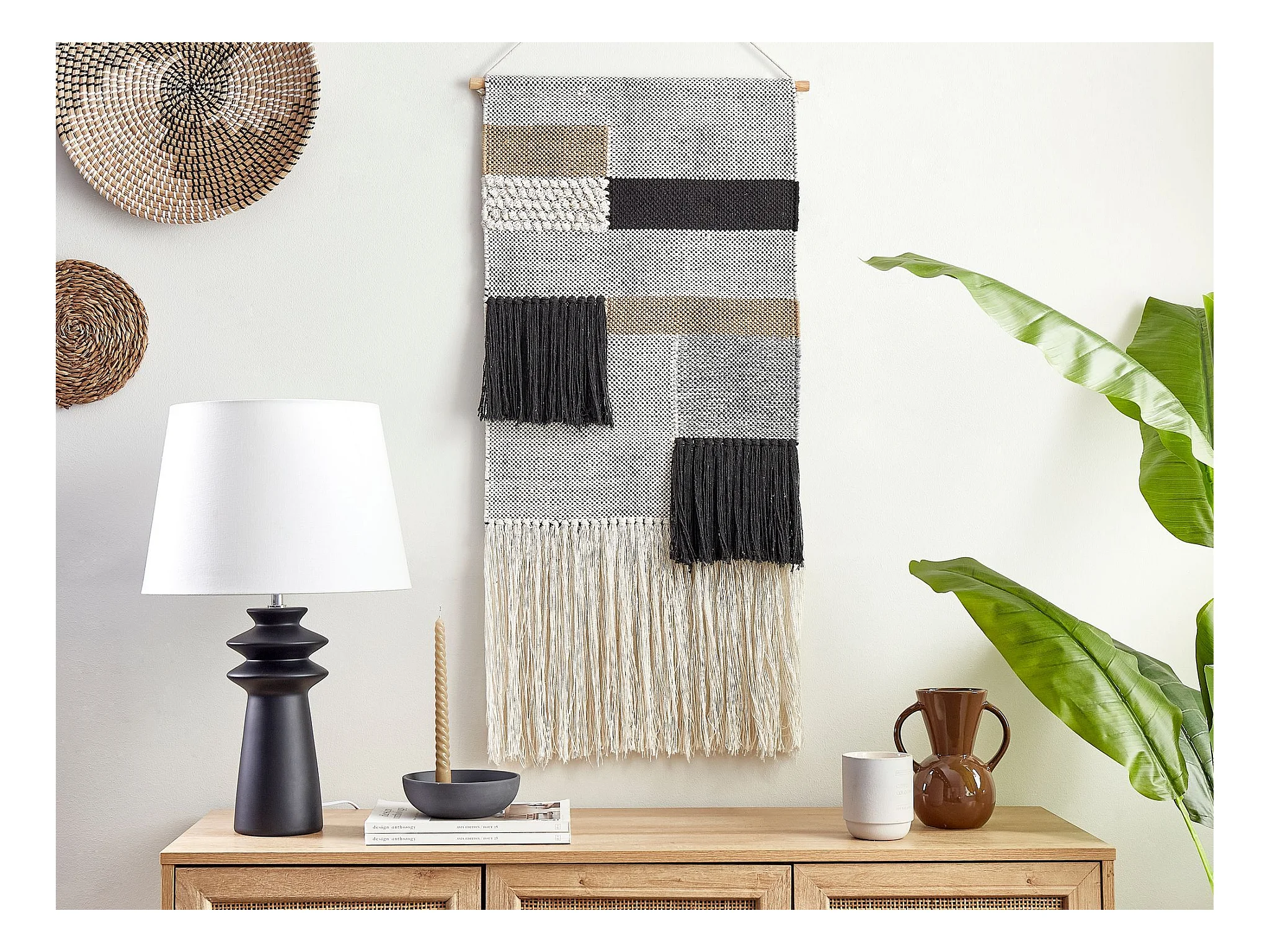 Wanddeko Baumwolle beige / schwarz handgemacht Boho Wandbehang mit Fransen Hangu