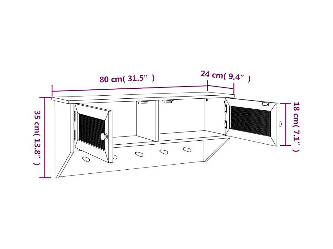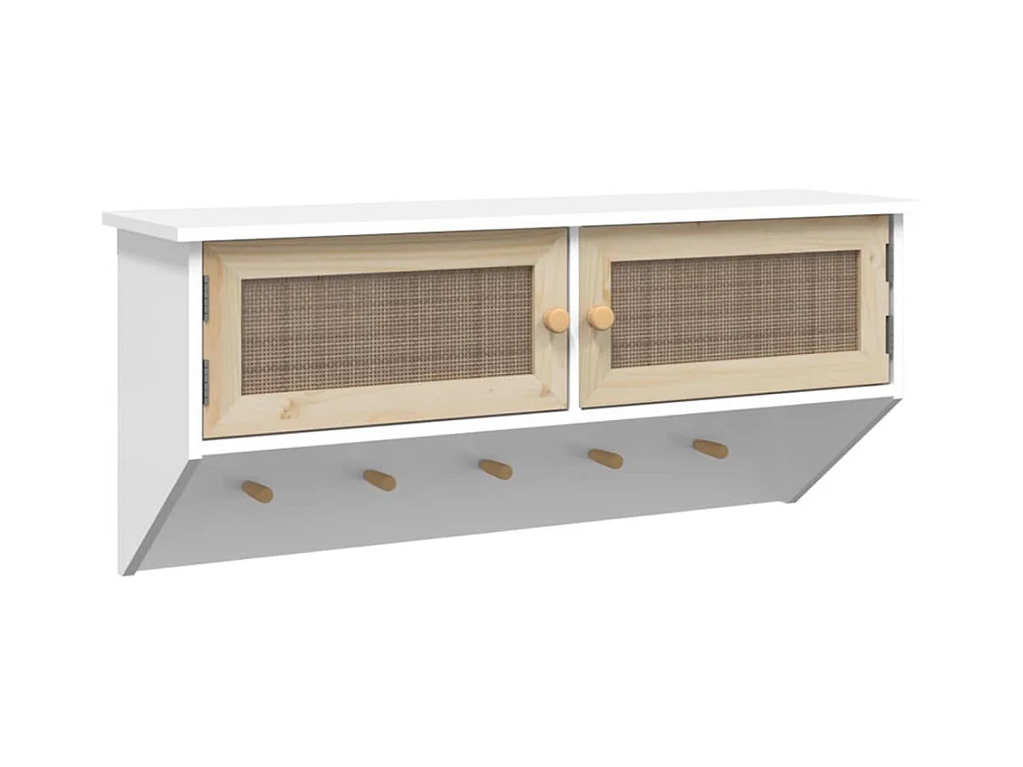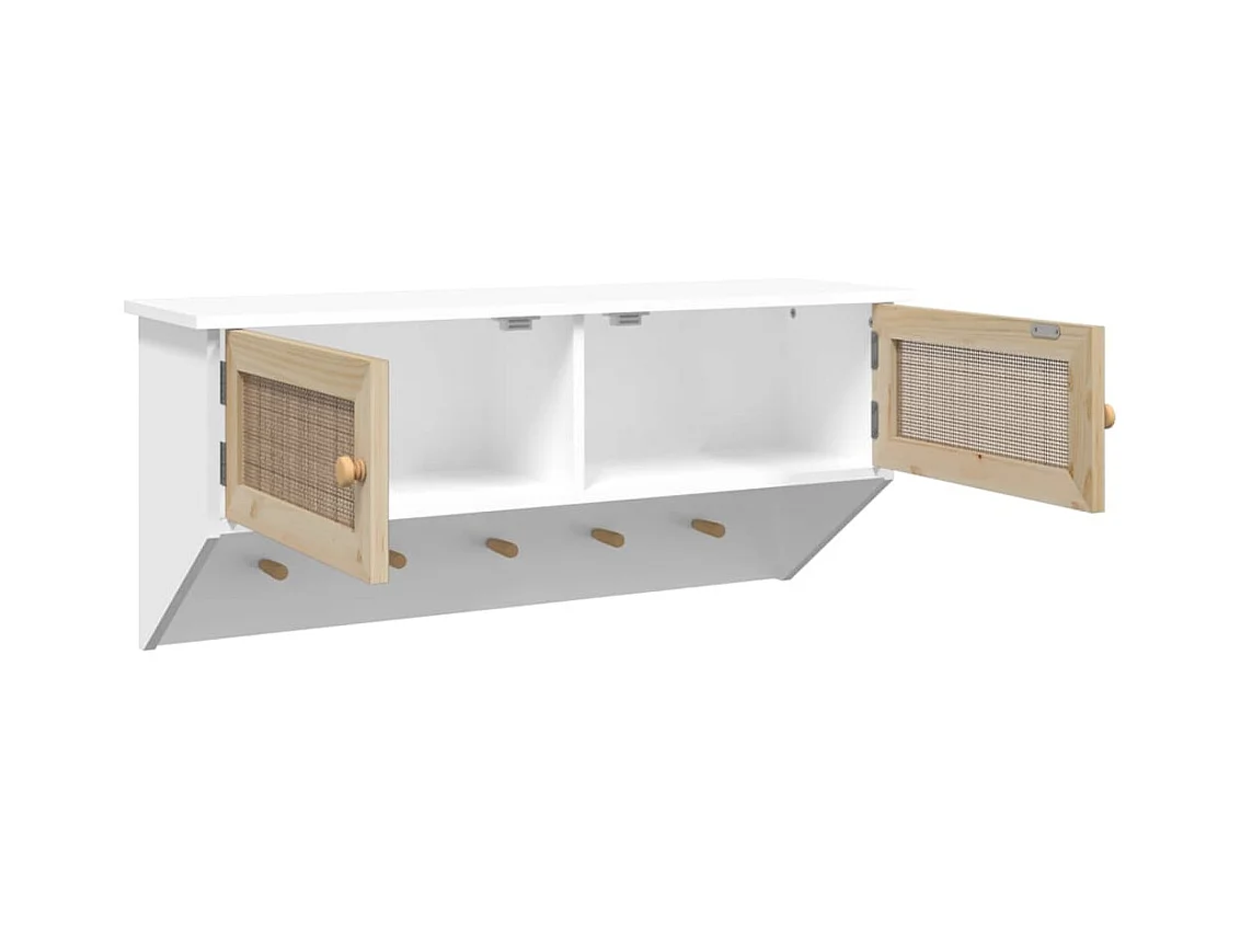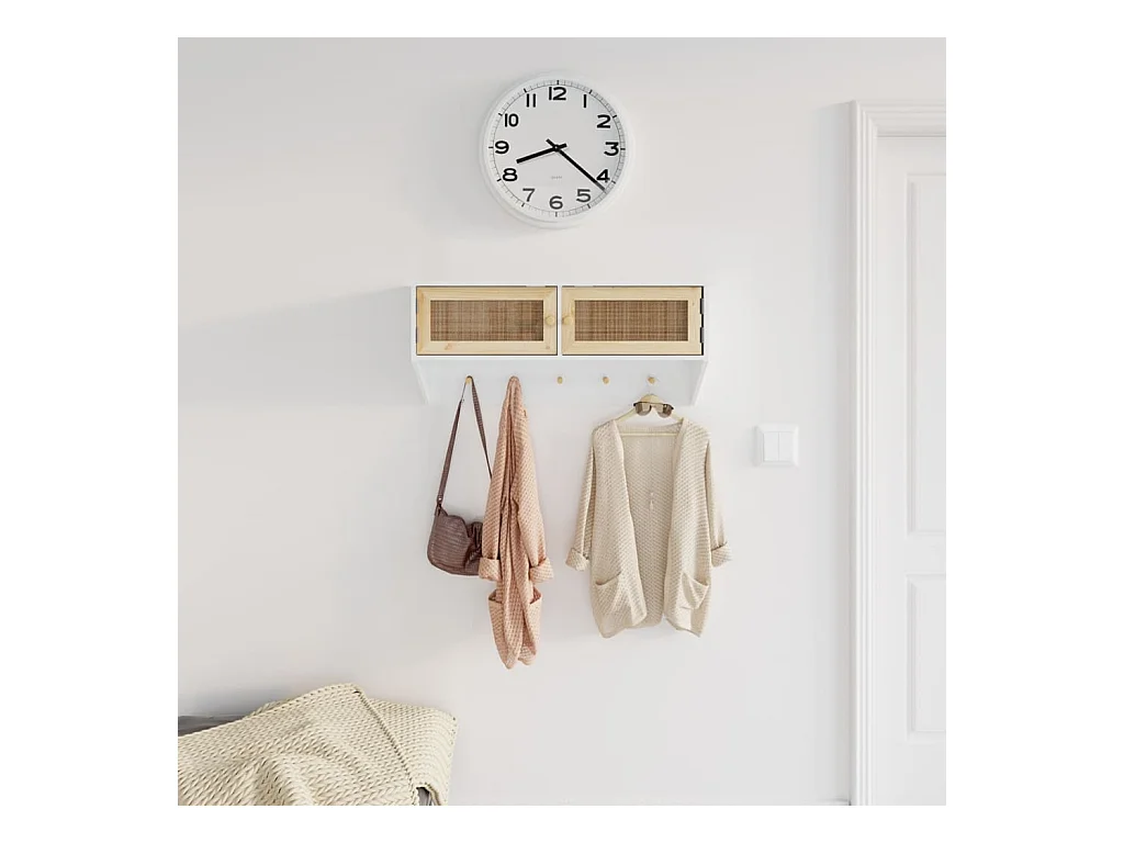 Wandgarderobe Weiß Holzwerkstoff und Rattan Natur