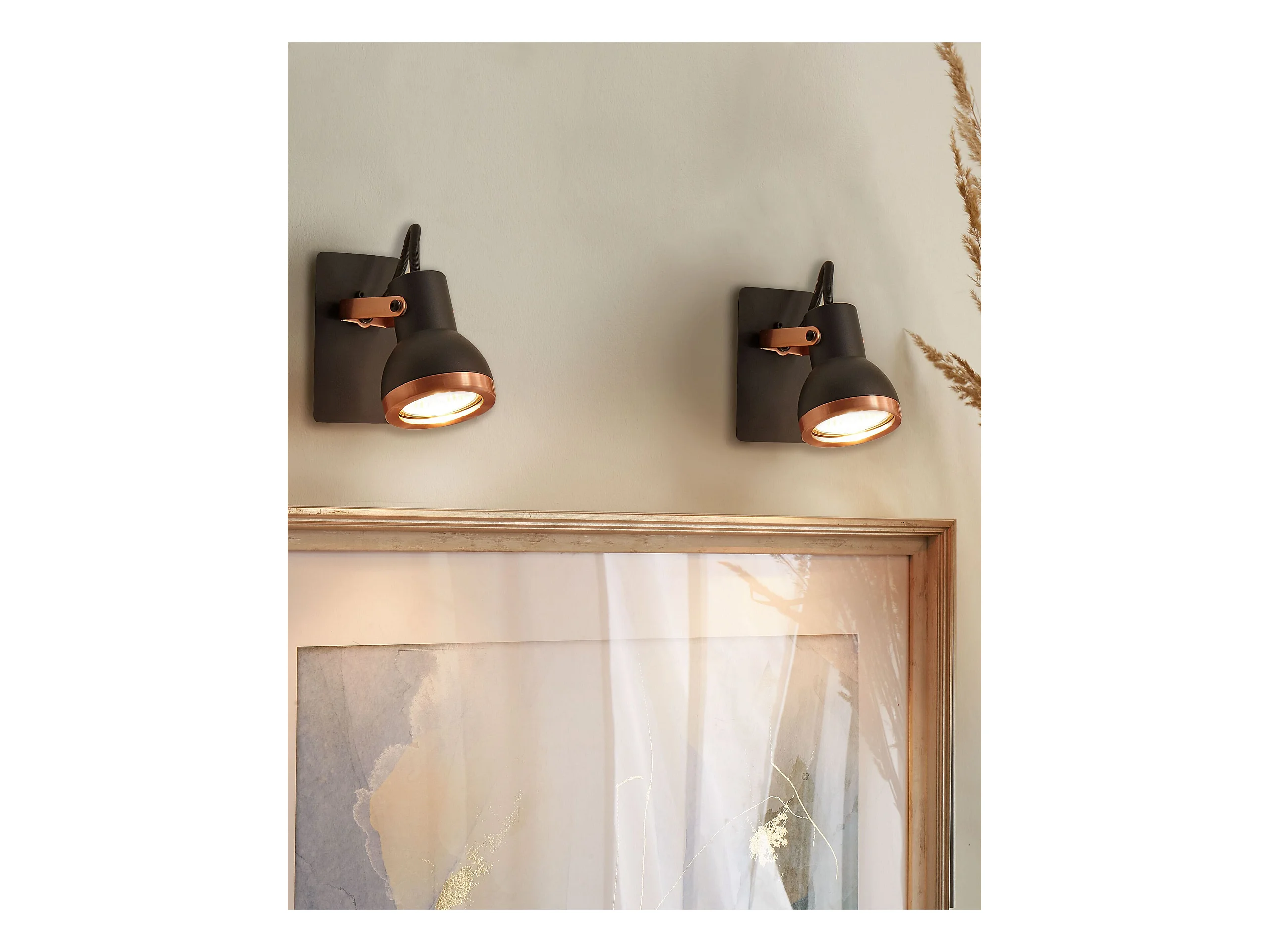Wandleuchte Metall schwarz / kupfer 2er Set rund BARO