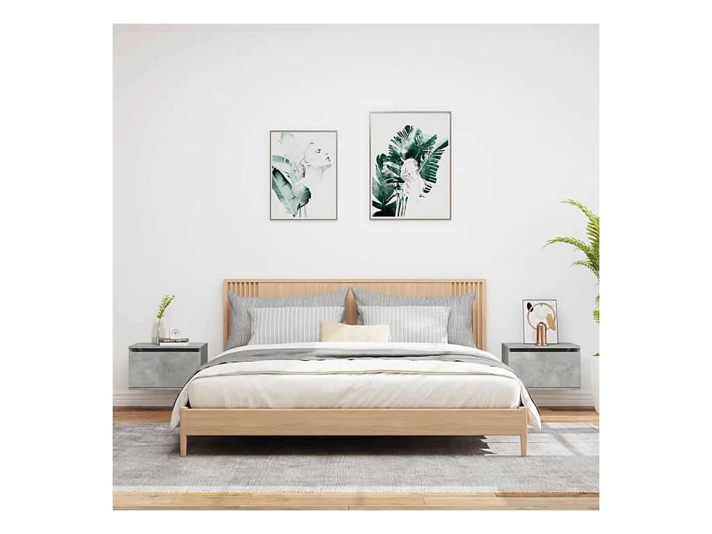 Wandmontierte Nachttische mit LED-Leuchten 2 Stück Betongrau
