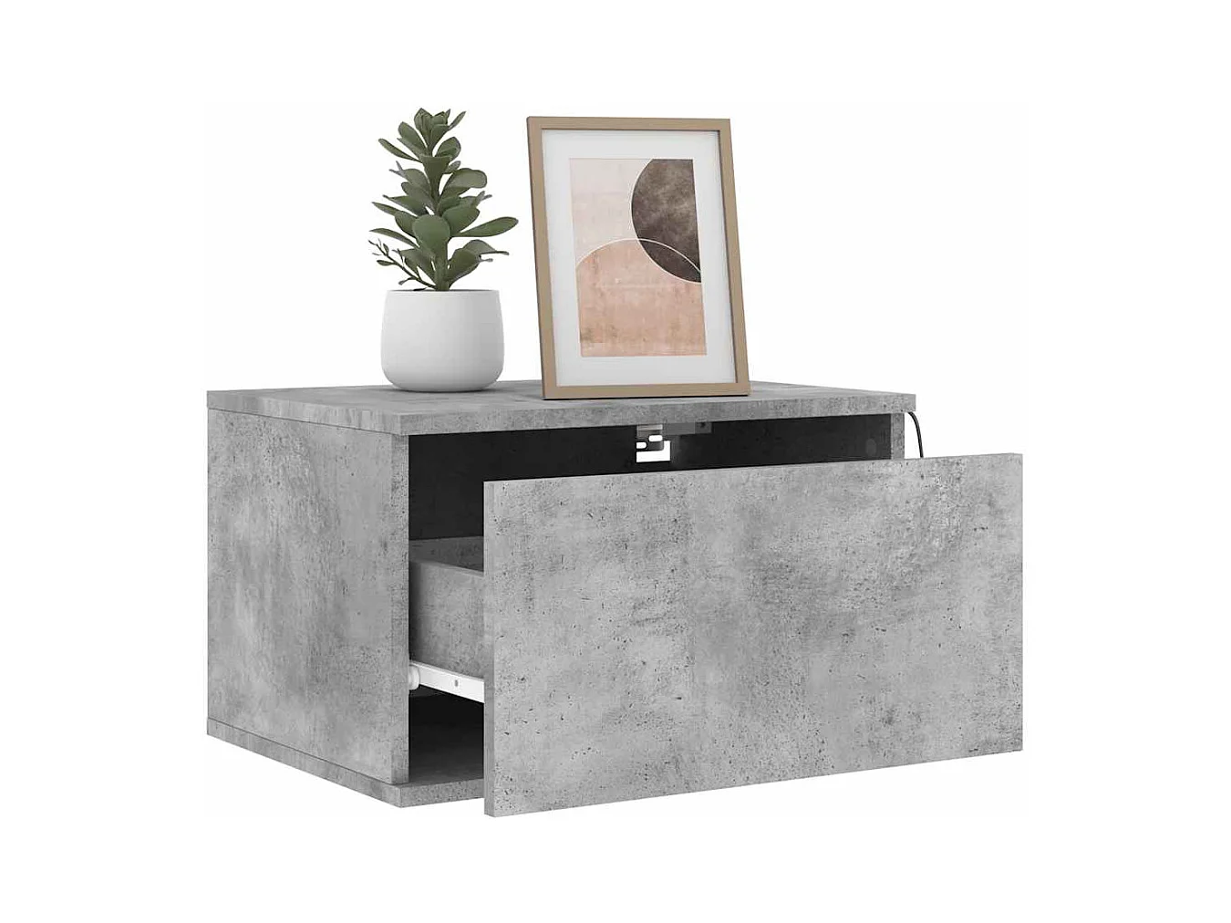 Betongrauer Wandnachttisch mit LED-Leuchten