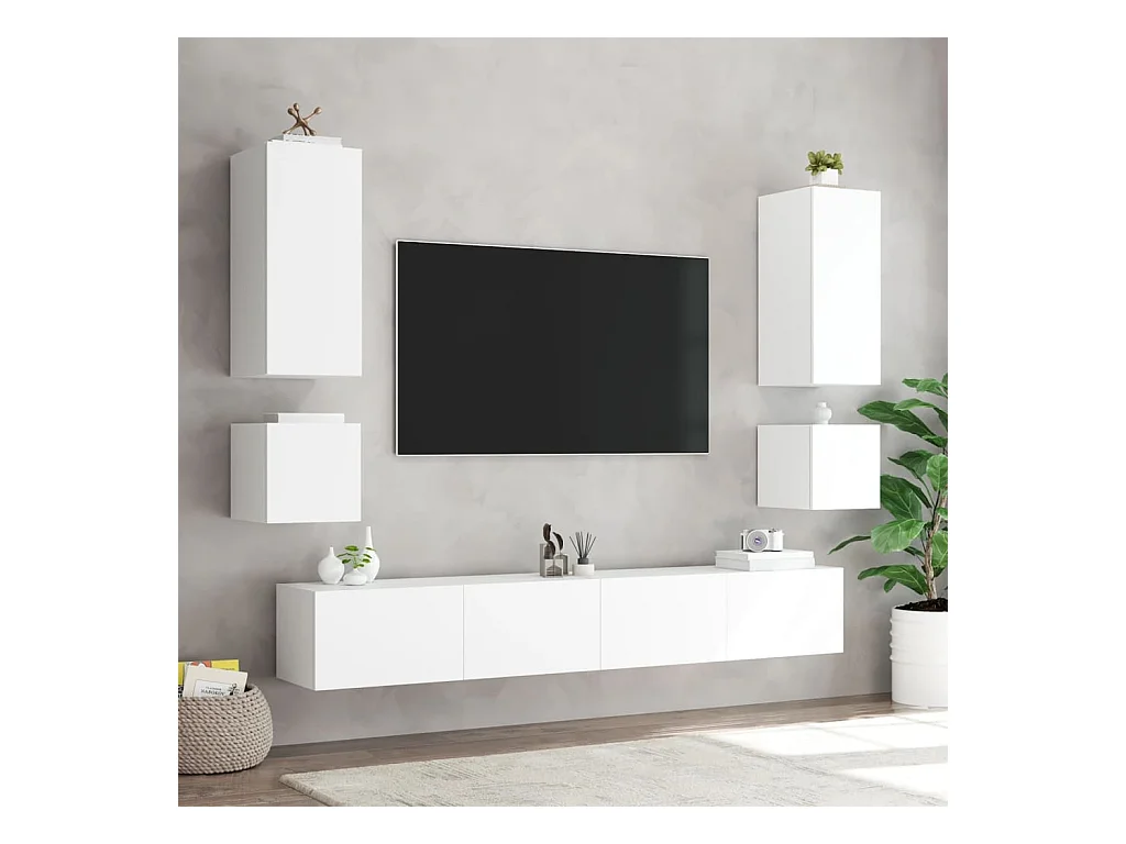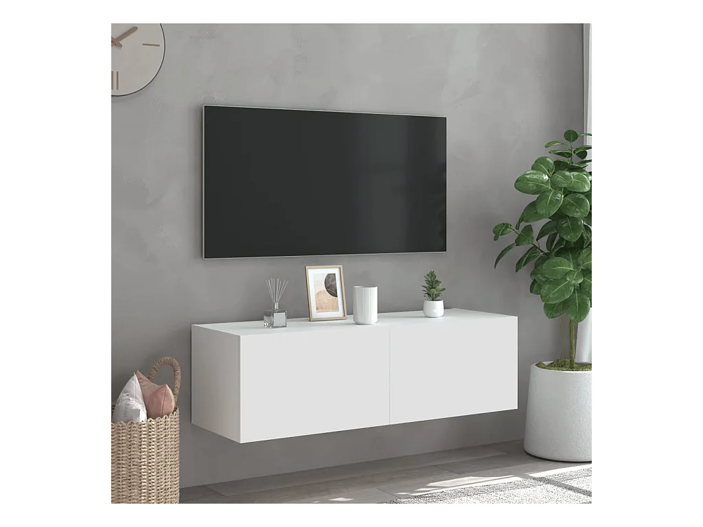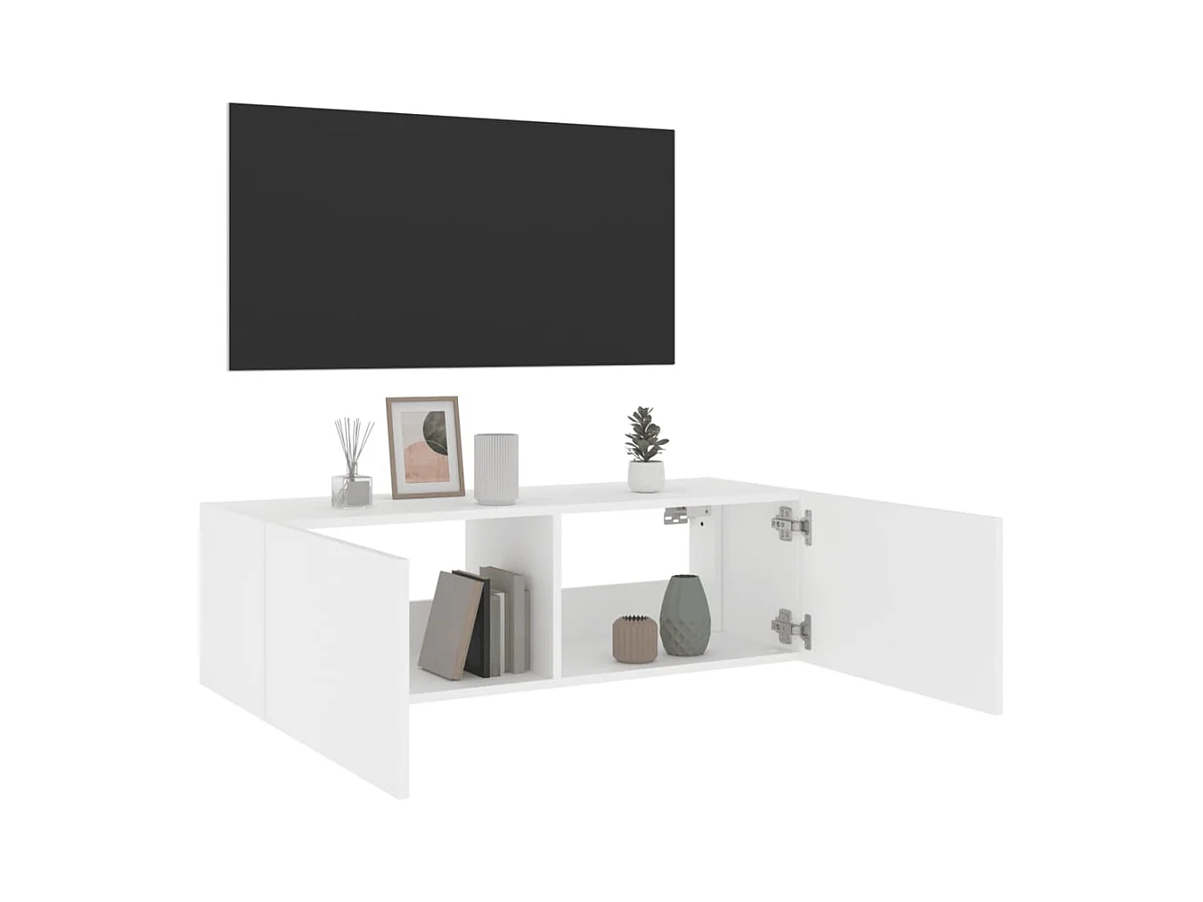 Wandmontierter TV-Schrank mit LED-Beleuchtung, weiß, 100x35x31 cm