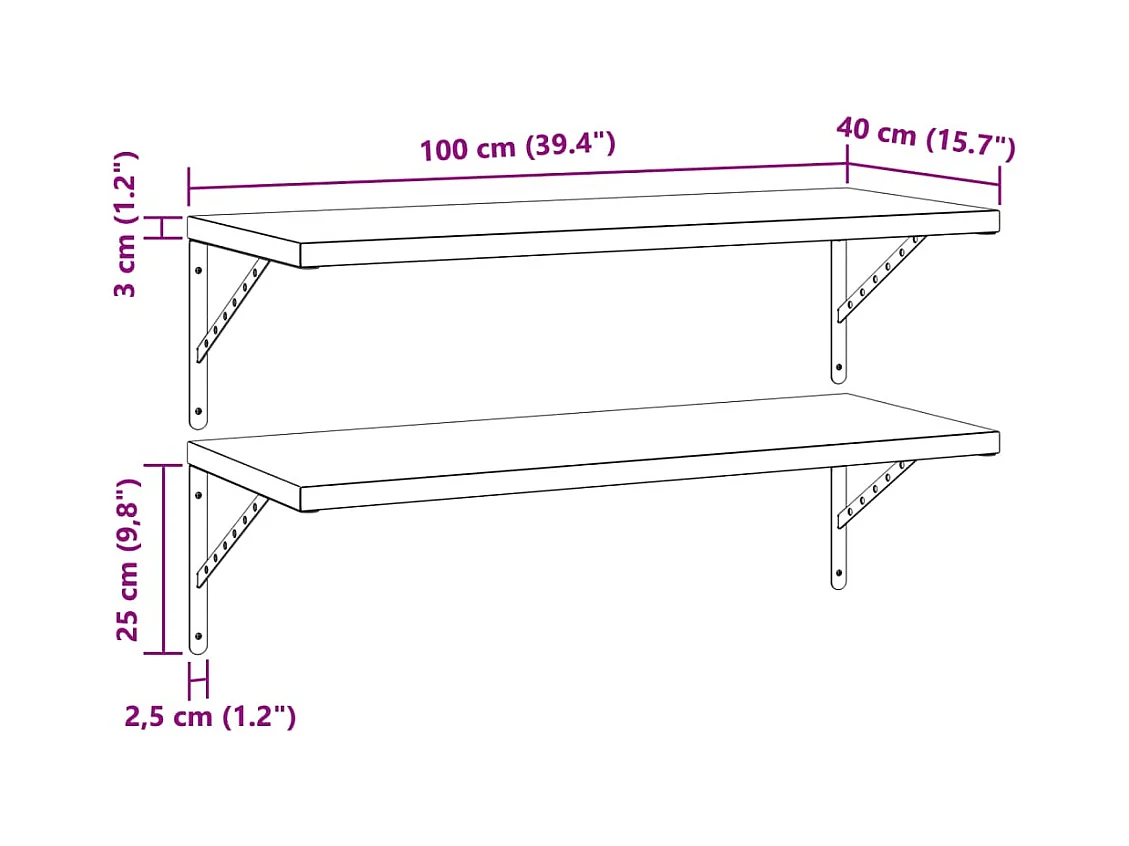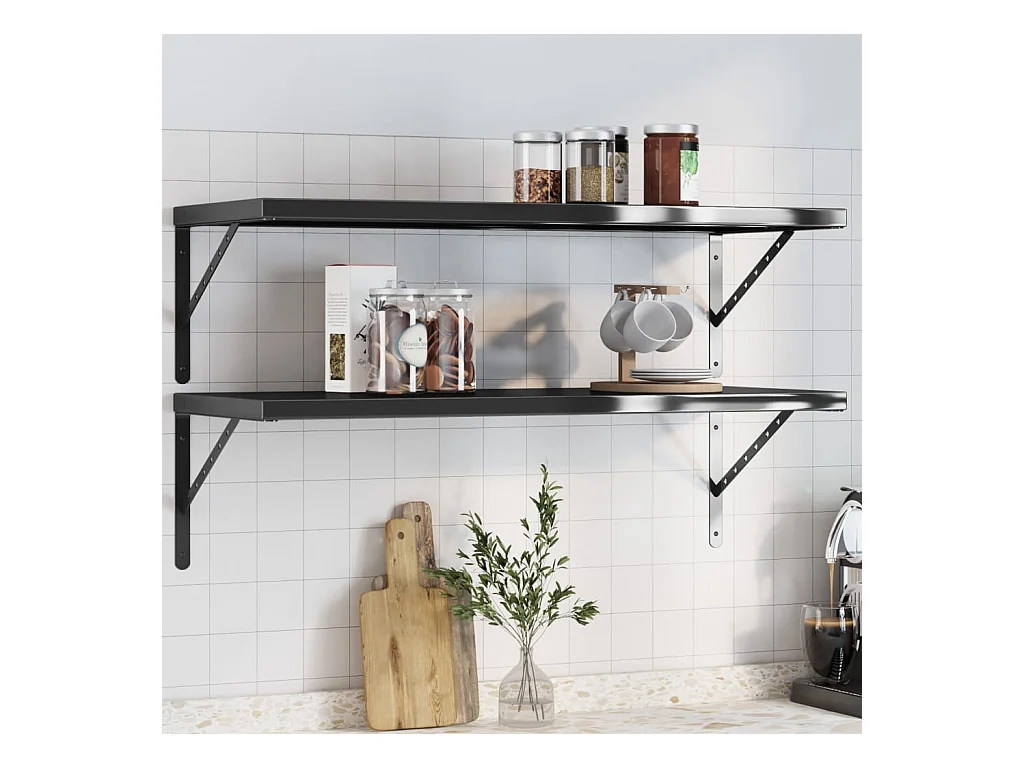 Wandregale 2 Stk. 100x40 cm Schwarz Edelstahl