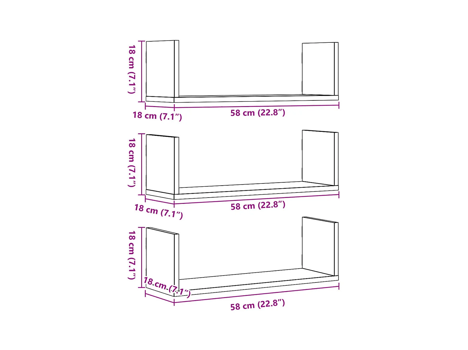 Wandregale 3 Stück weiß 58x18x18 cm Holzwerkstoff