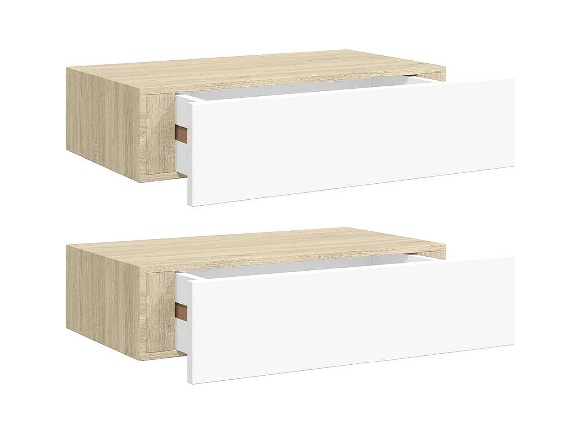 Wandregale mit Schubladen 2 Stk. Eichen-Optik Weiß 40x23,5x10cm