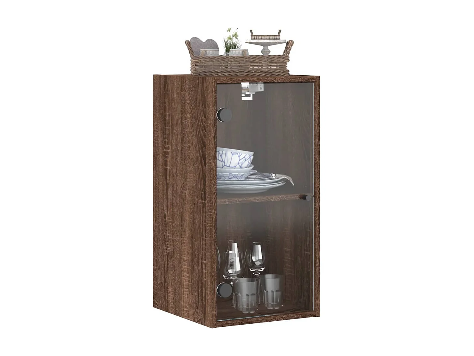 Wandschrank mit Glastüren Braun Eichen-Optik 35x37x68,5 cm