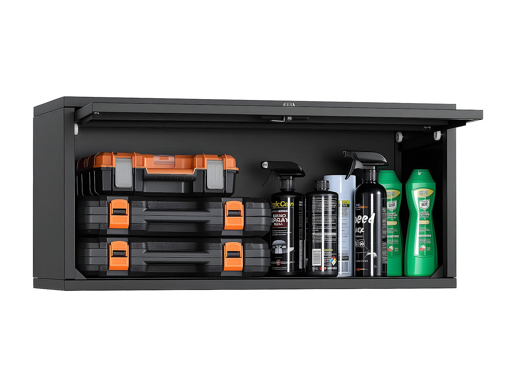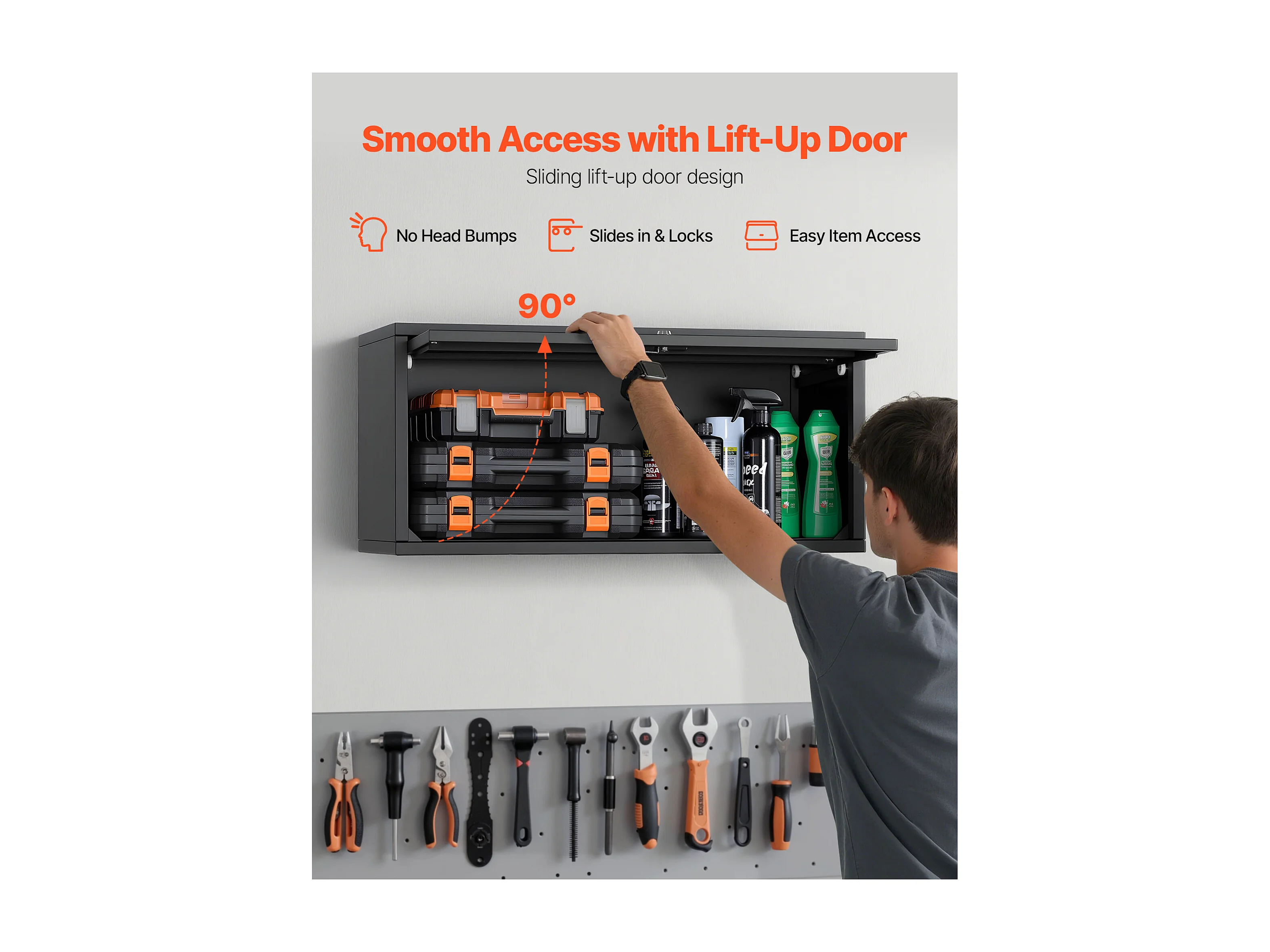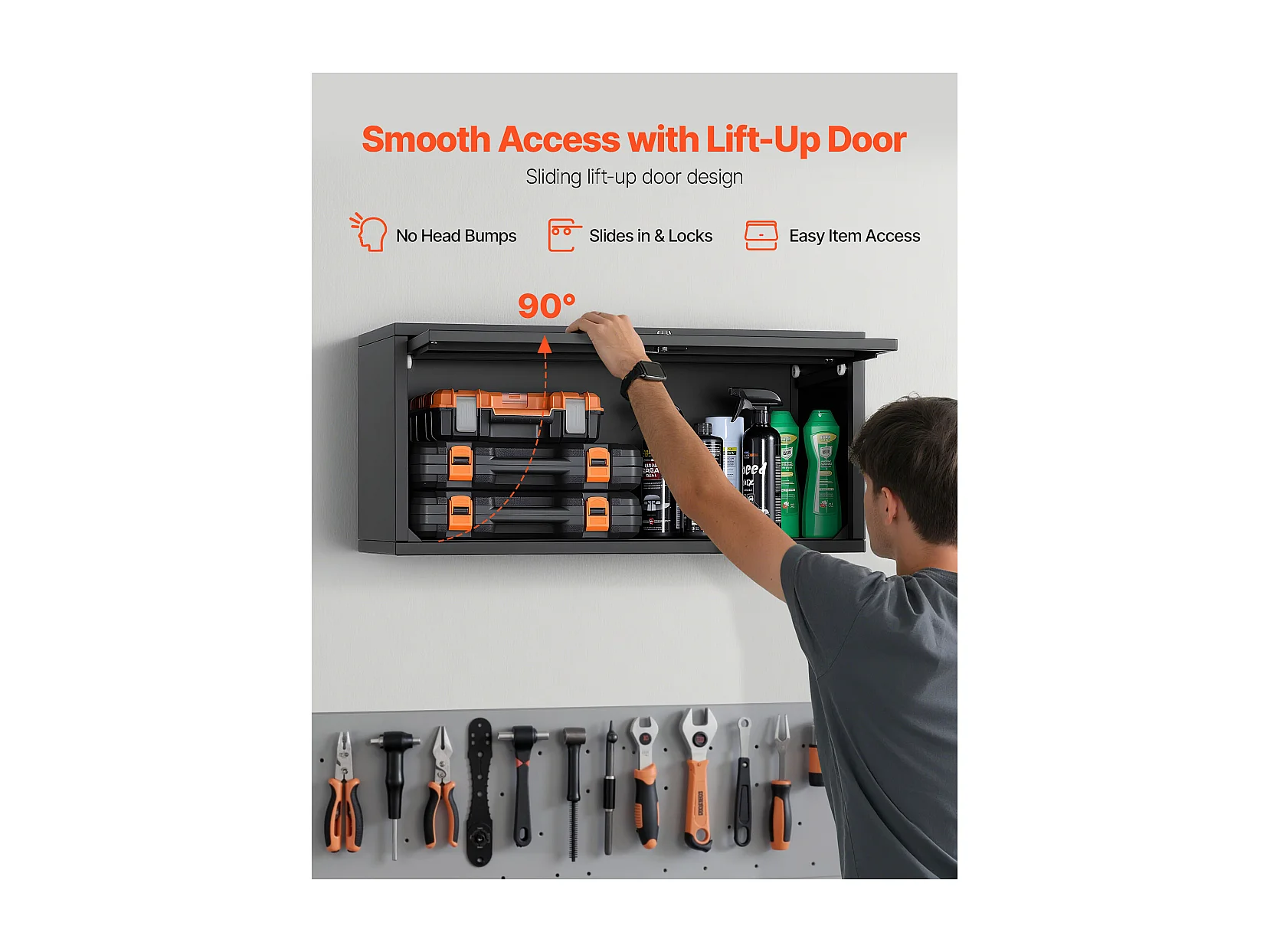Wandschrank SucceBuy Werkstatt, 77 x 30,5 x 35,6 cm, Werkzeugschrank Garage Hängend Metall, Wandlagerung, mit Klapptür, Tragfähigkeit 54,5 kg