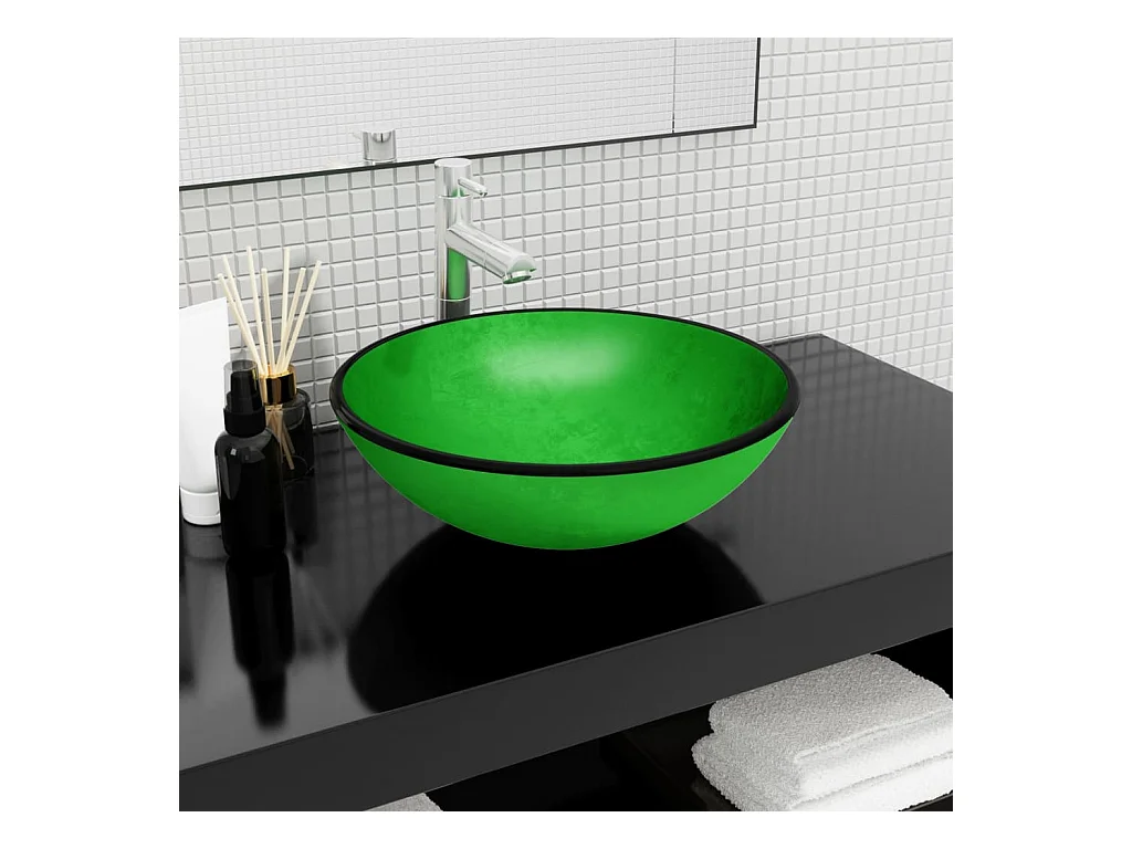 Waschbecken aus gehärtetem Glas 42x14 cm grün