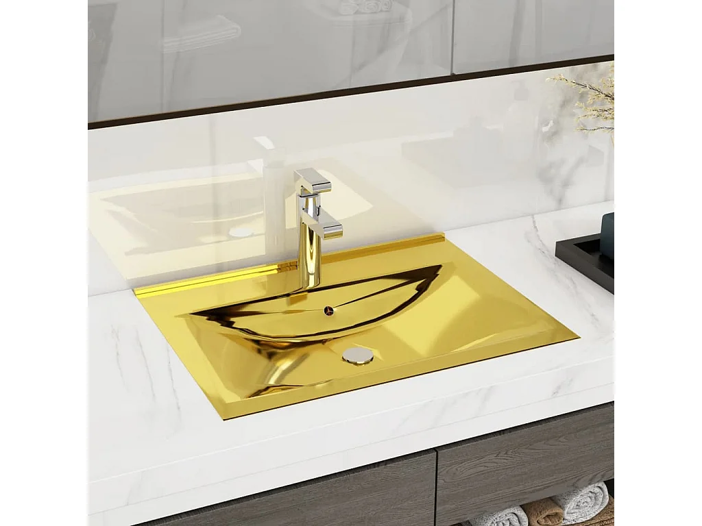 Waschbecken mit Überlauf 60x46x16 cm Keramik Gold
