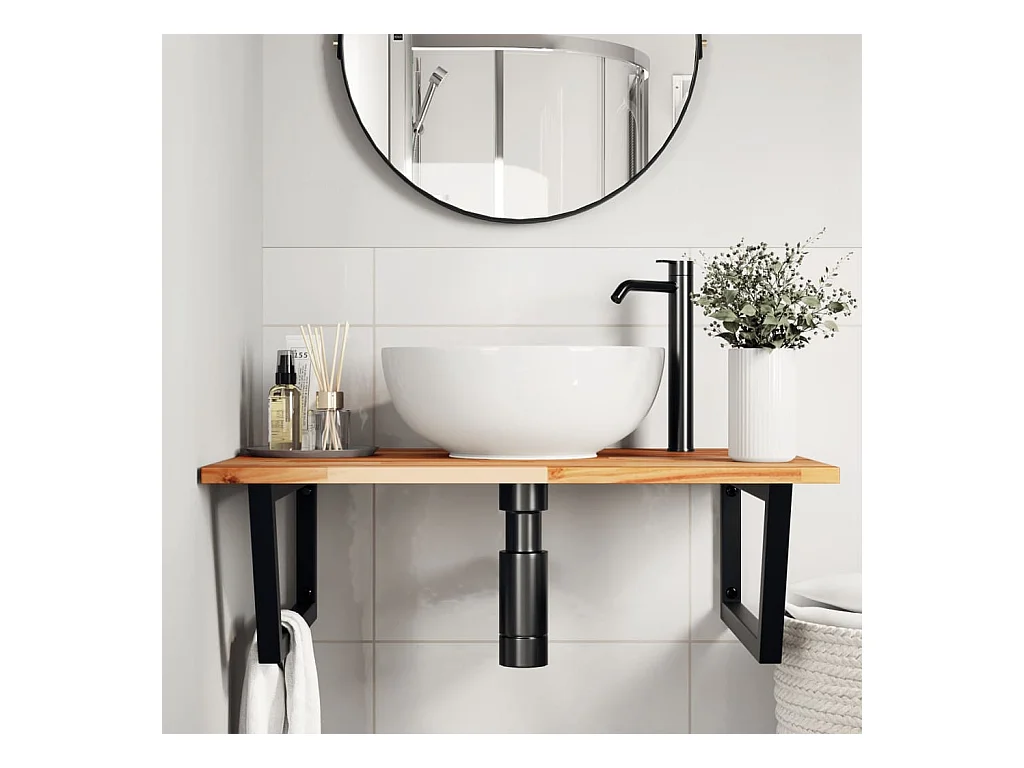 Waschtischplatte mit Halterung Stahl und Massivholz Eiche