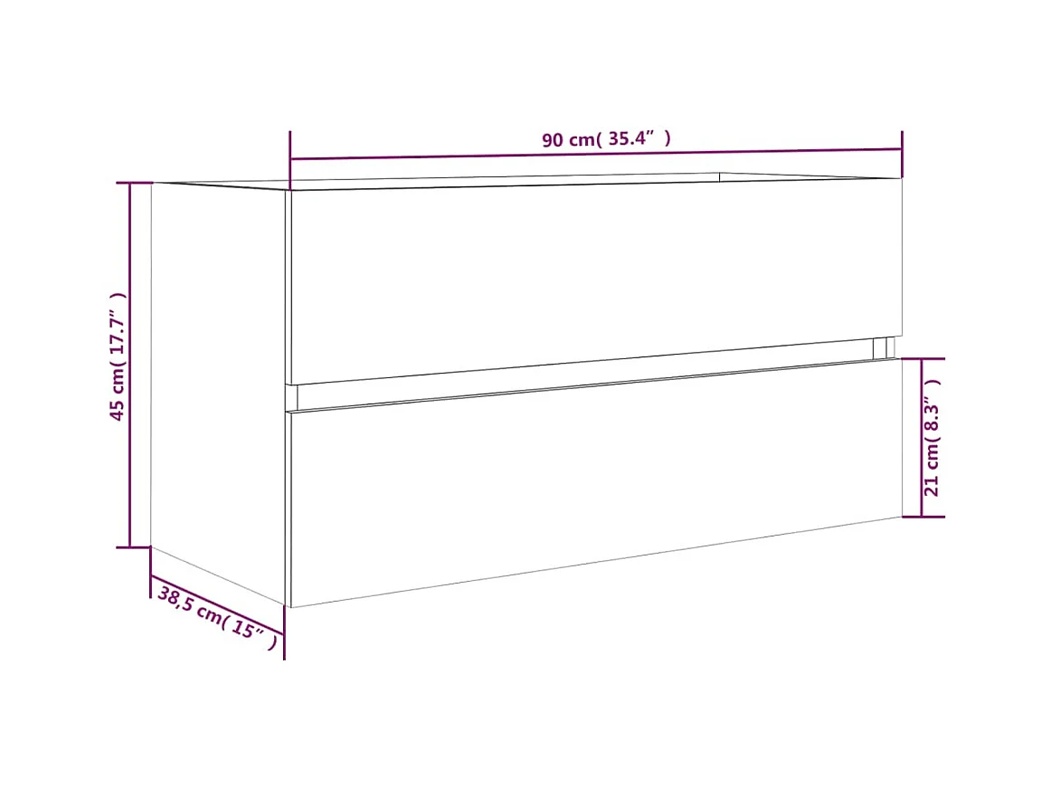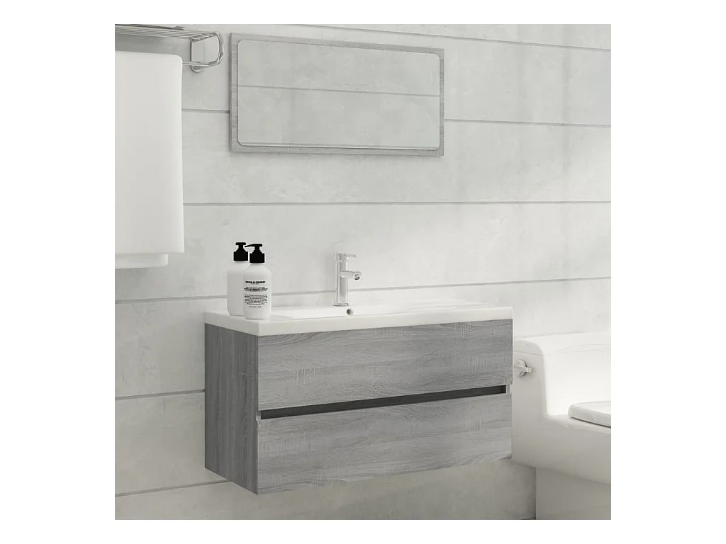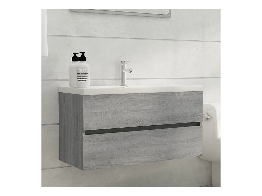 Waschbeckenschrank in Sonoma-Grau, 90 x 38,5 x 45 cm, Holzwerkstoff