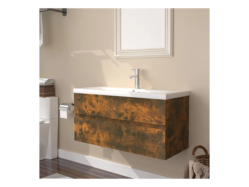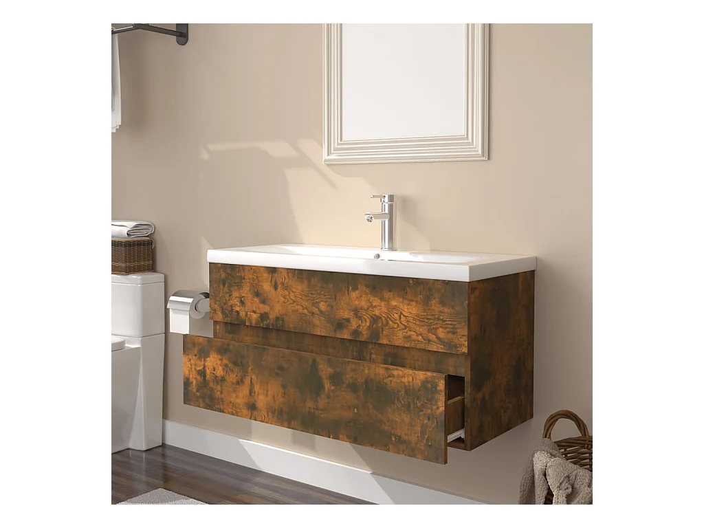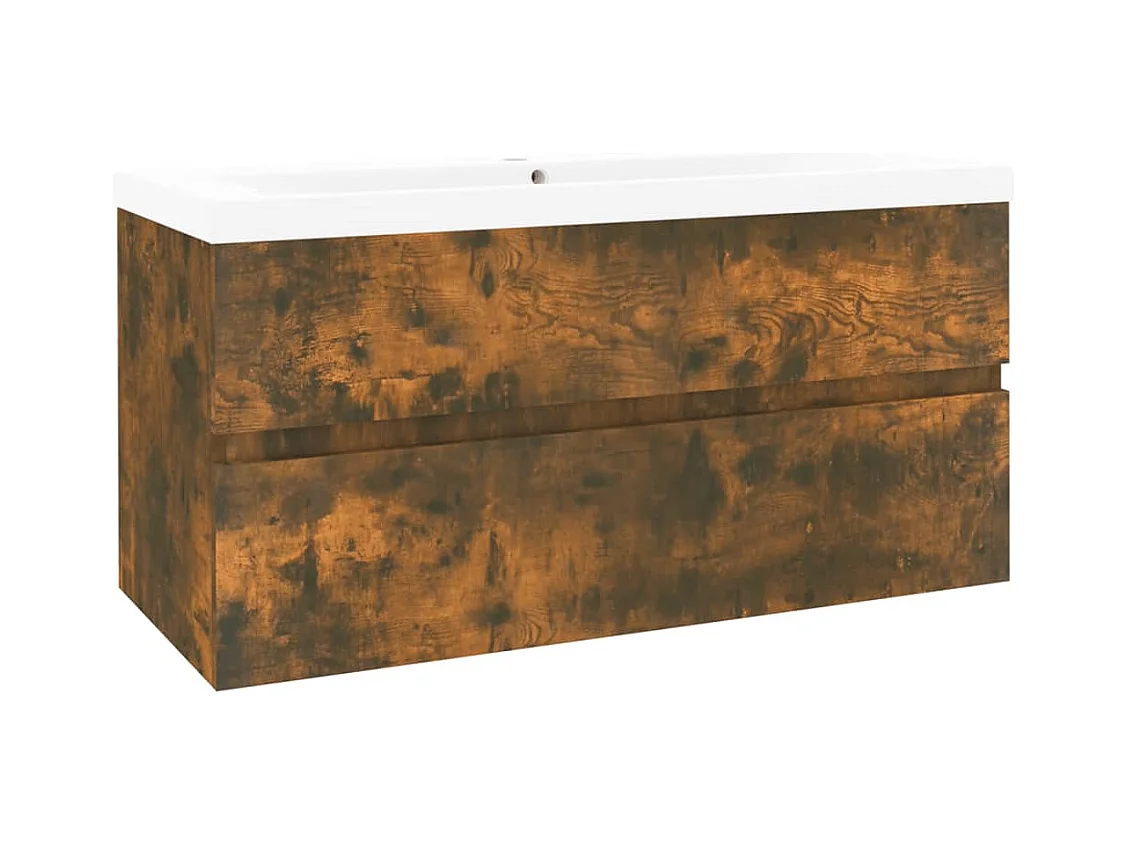 Waschbeckenschrank mit Einbaubecken Räuchereiche Holzwerkstoff