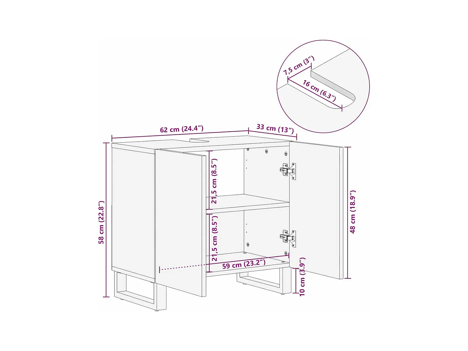 Waschbeckenschrank mit Regal Braun, Schwarz 62 x 33 x 58 cm