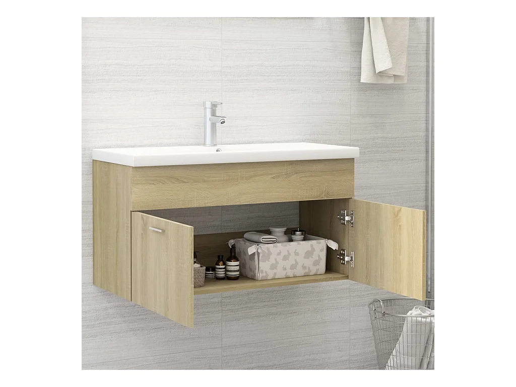 Waschbeckenunterschrank aus Sonoma-Eiche, 90 x 38,5 x 46 cm, Holzwerkstoff