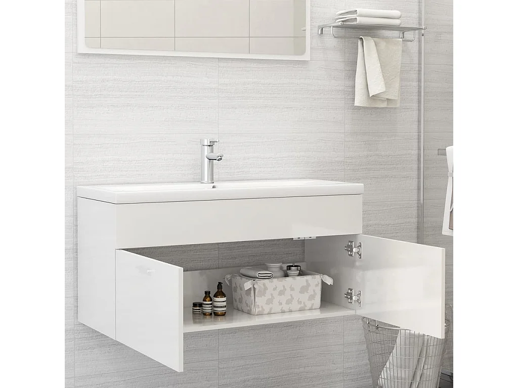 Waschbeckenunterschrank, glänzend weiß, 100 x 38,5 x 46 cm, Holzwerkstoff