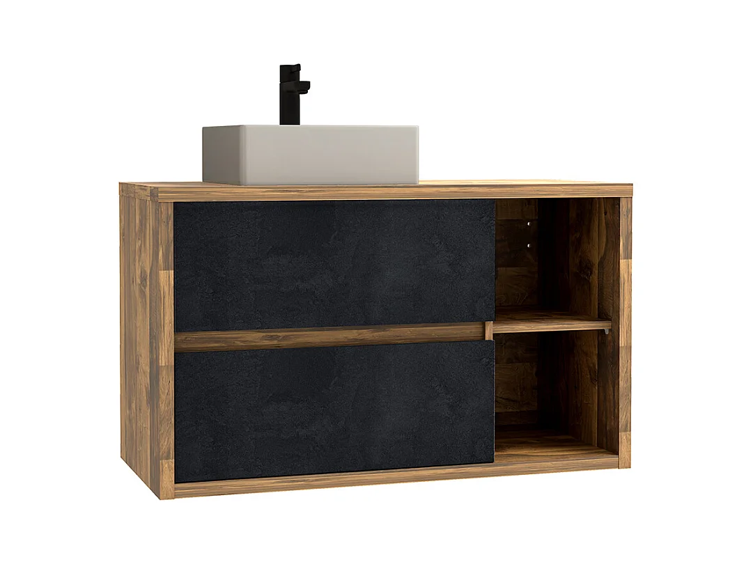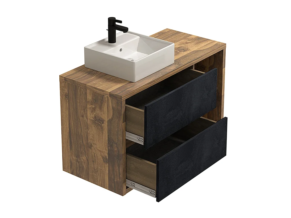 Waschbeckenunterschrank hängend mit quadratischem Einzelwaschbecken - Naturfarben & Anthrazit - 100 cm - TIKITIKI