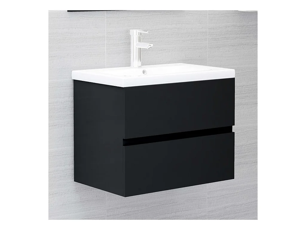 Waschbeckenunterschrank mit Einbaubecken Schwarz Holzwerkstoff