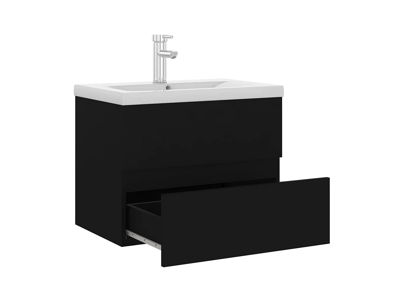 Waschbeckenunterschrank mit Einbaubecken Schwarz