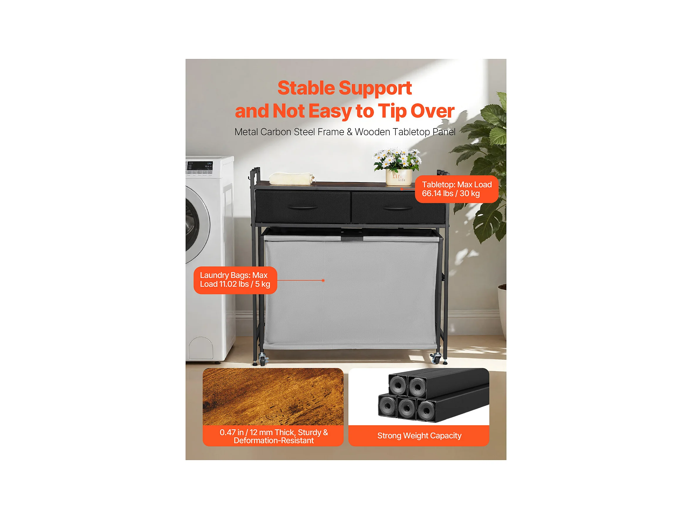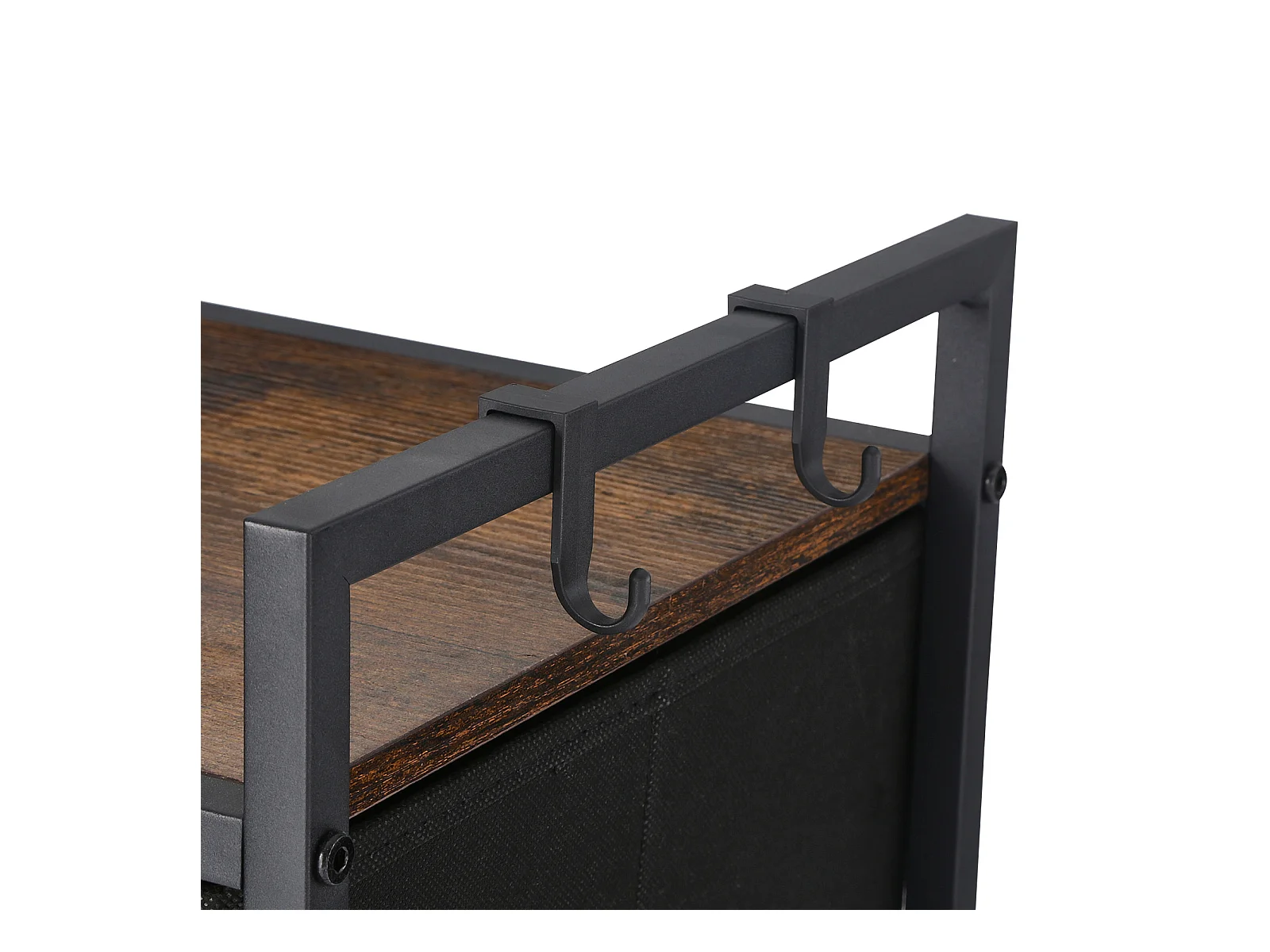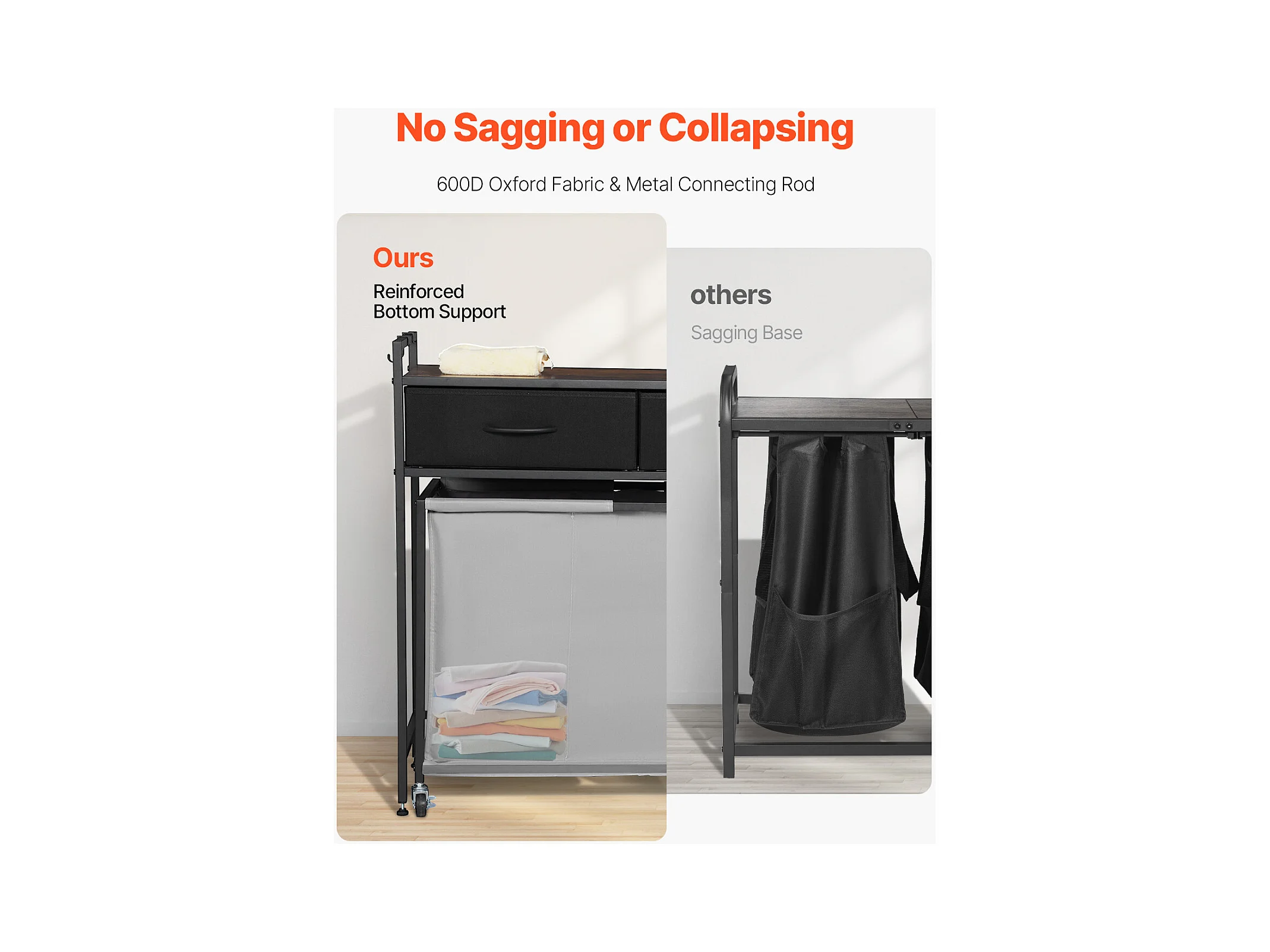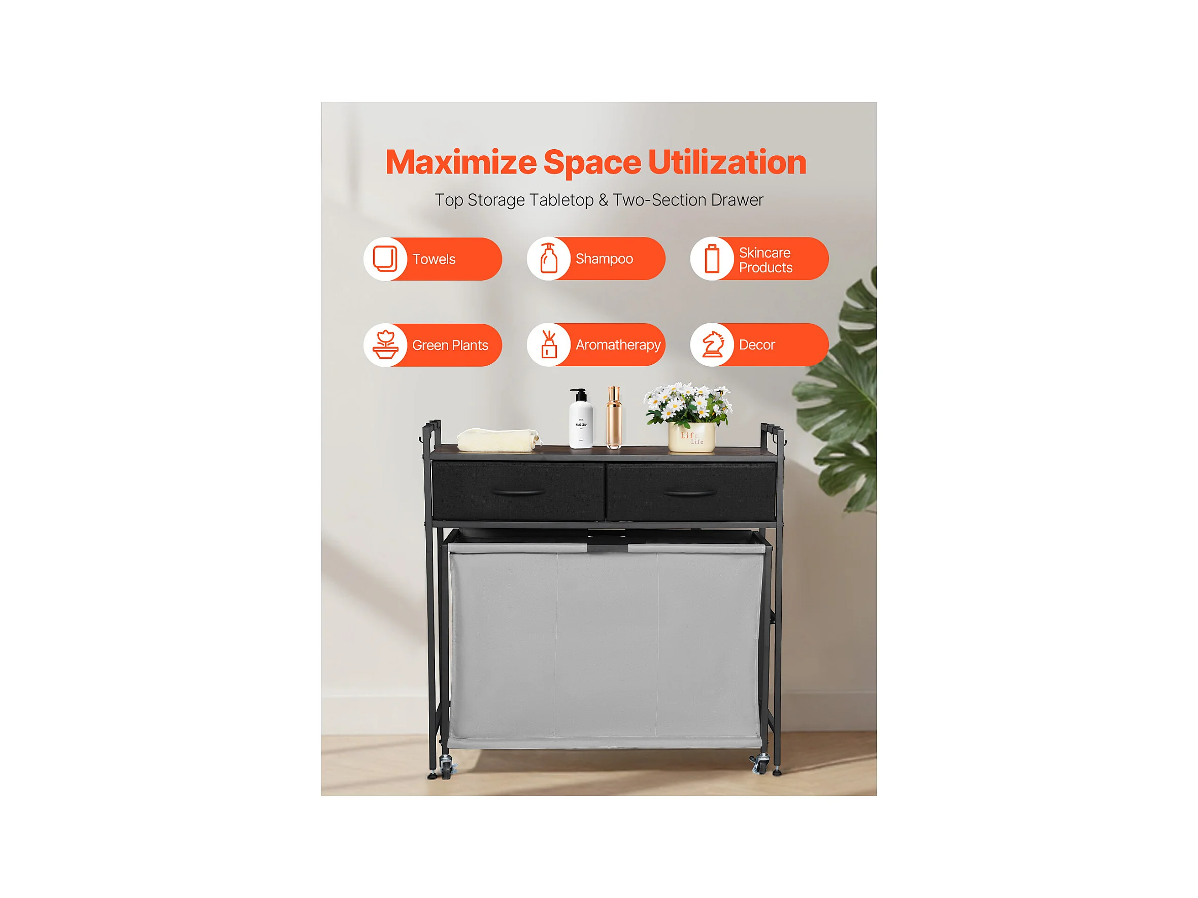 Wäschekorb SucceBuy Wäschesammler mit 3 Fächern und Rollen, Ausgestattet mit einem Herausziehbaren Beutel, einem Holzdeckel, 2 Schubladen und Haken