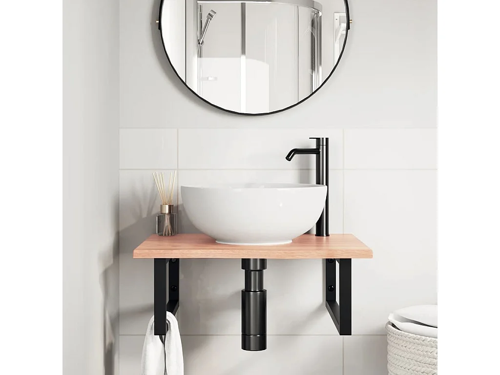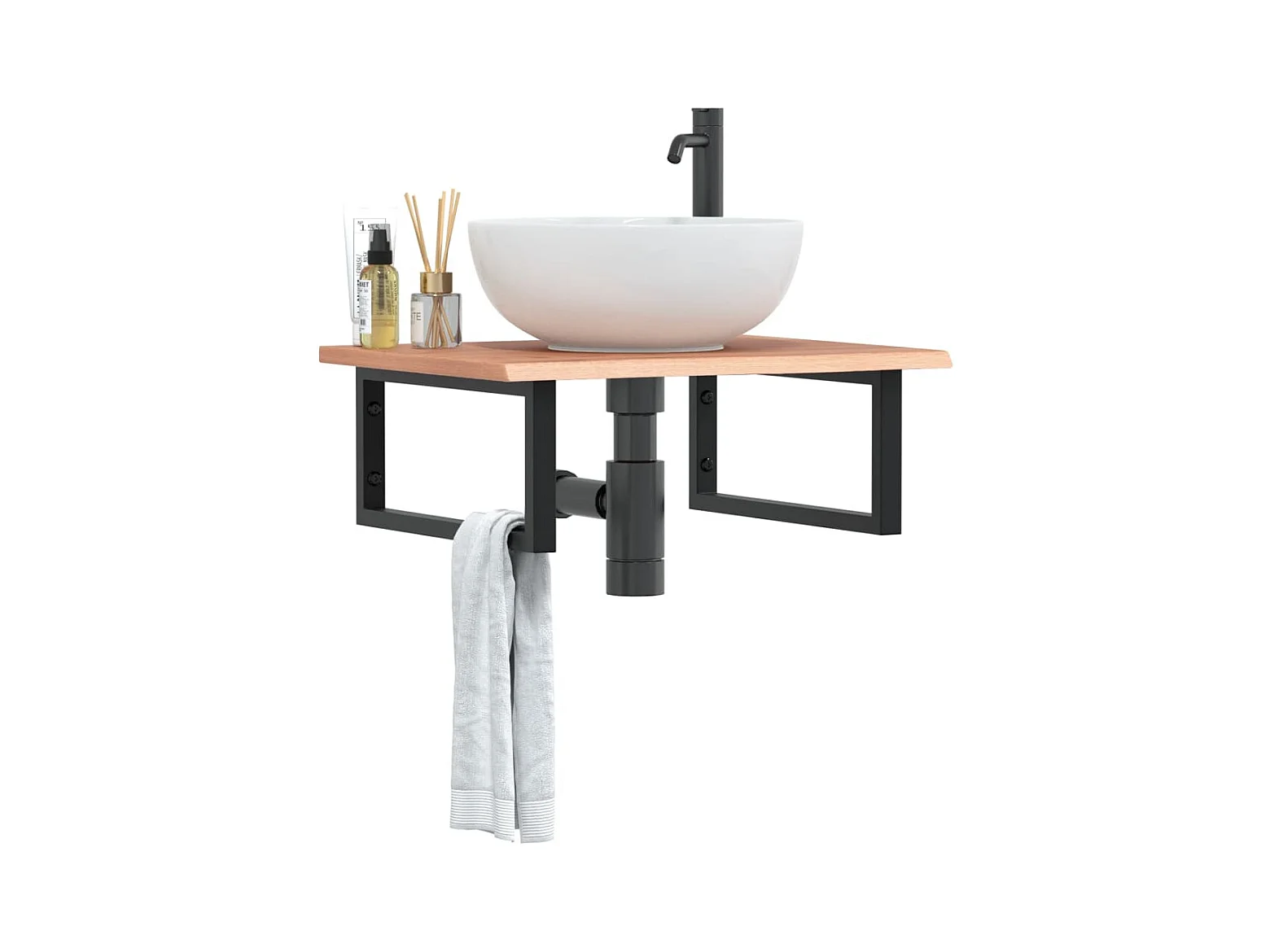 Waschtischplatte mit Halterung Stahl und Massivholz Eiche
